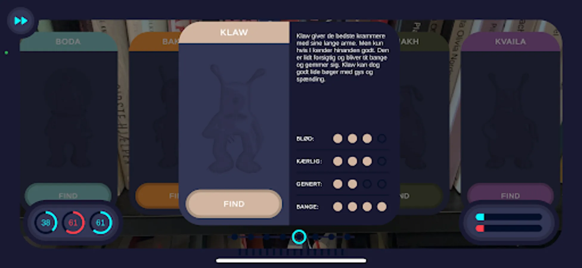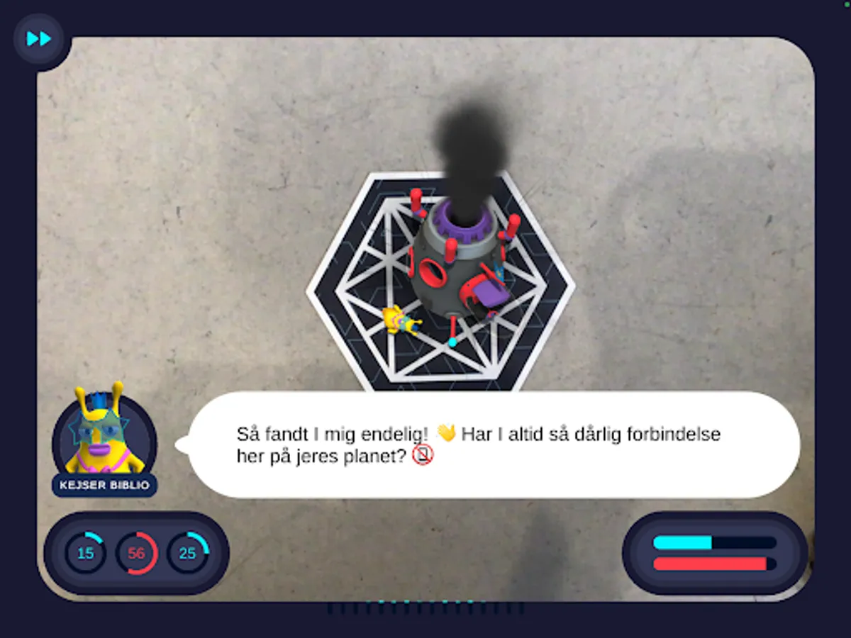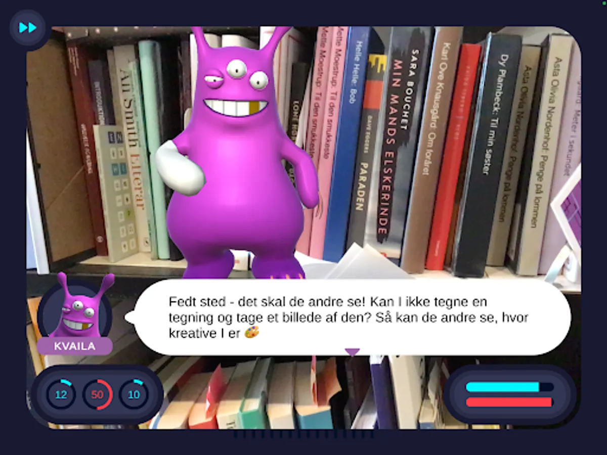 The app is based on Augmented Reality which is triggered via certain markers that must be inserted around the library. To use the app, you must create a team for your library at bibliobitterne.com. Here you can choose between different missions that take the children around among the library's materials. You can also create your own mission. Read much more and find materials on the 'Bibliobitterne' group at centralbibliotek.dk.