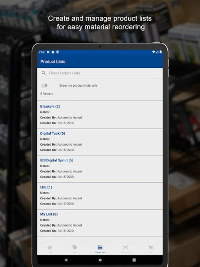 • Create lists of frequently ordered products