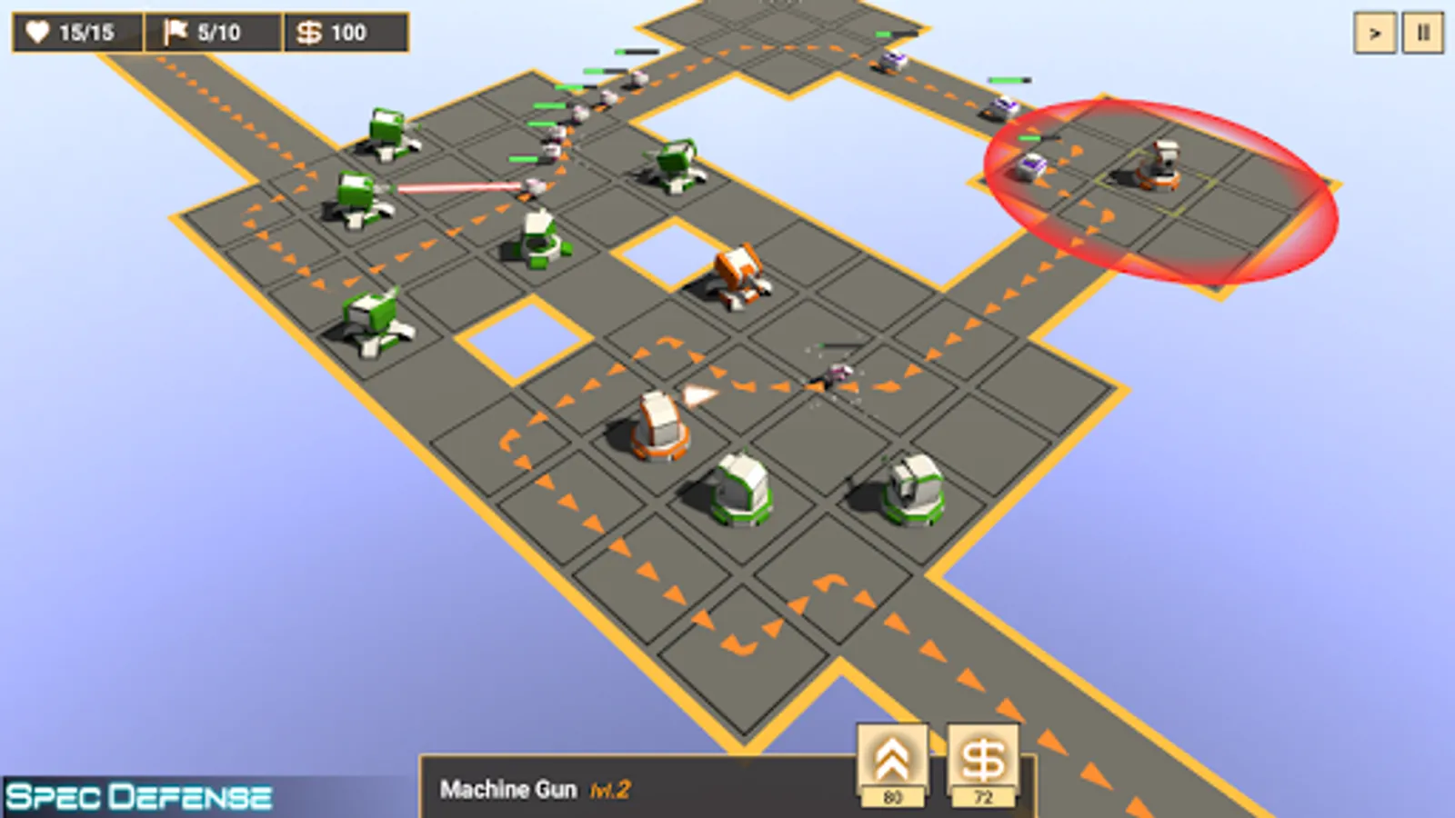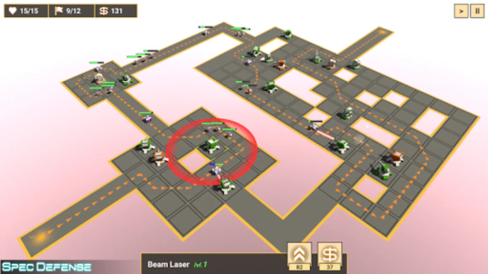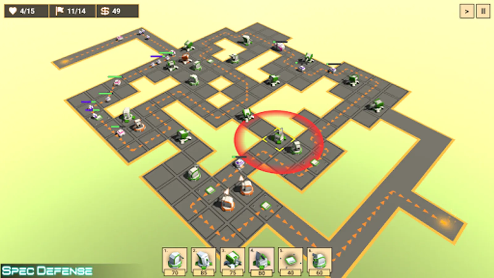 Spec Defense is a thinking man's tower defense with strategy and puzzle-solving thrown in for a good mix. It's designed to be one thing and one thing only, an engaging tower defense experience with loads of strategic depth.