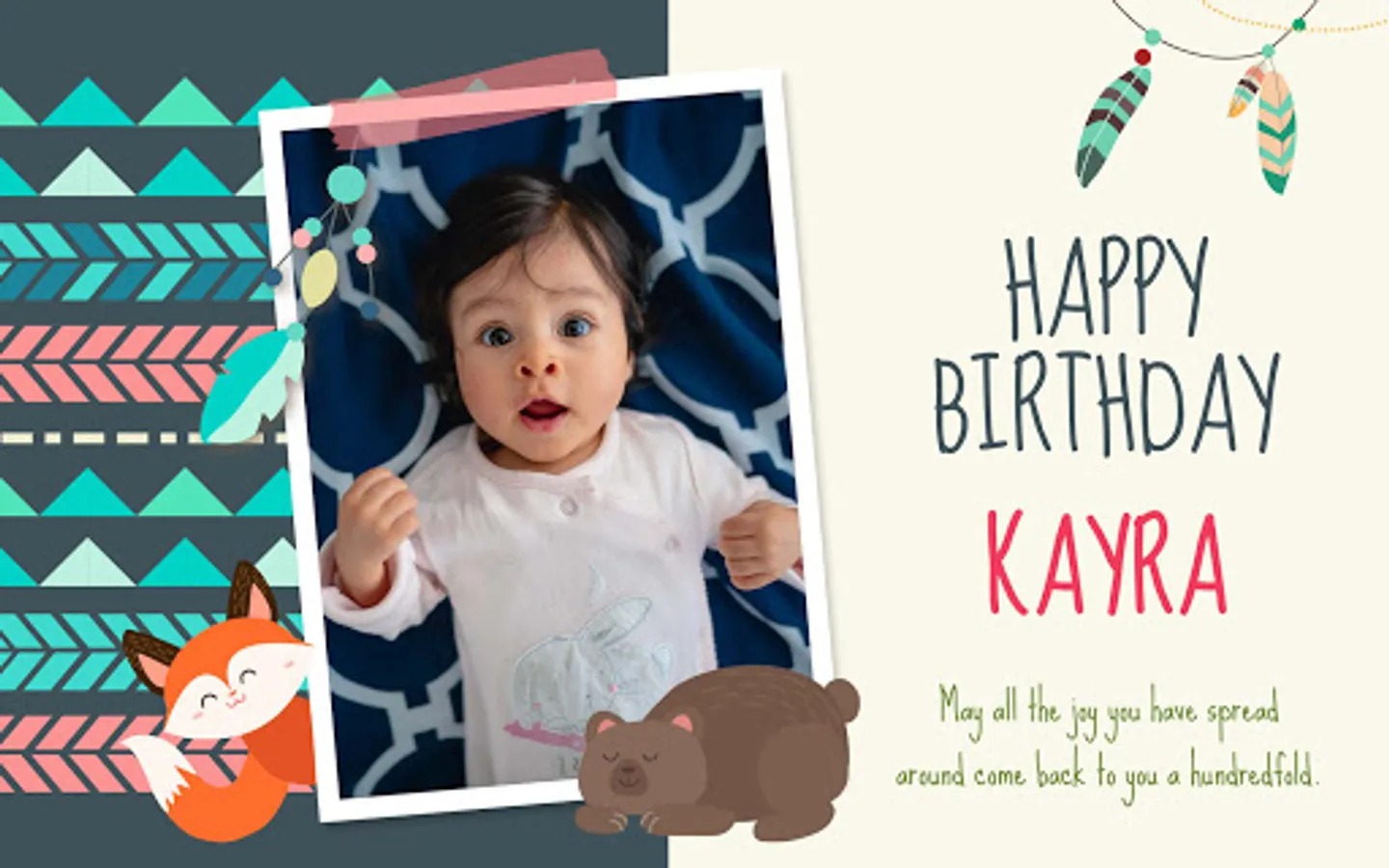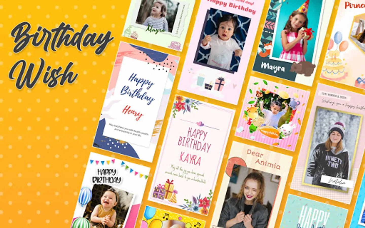- Create personalized Birthday greeting cards easily with this feature. You can add a name and photo to make a special personalized card for everyone. Wish sticker and cake sticker can also be added to make a card more attractive. Different formats are available to create wish cards and easy to share on social media. Use it and make your loved ones' day special.
