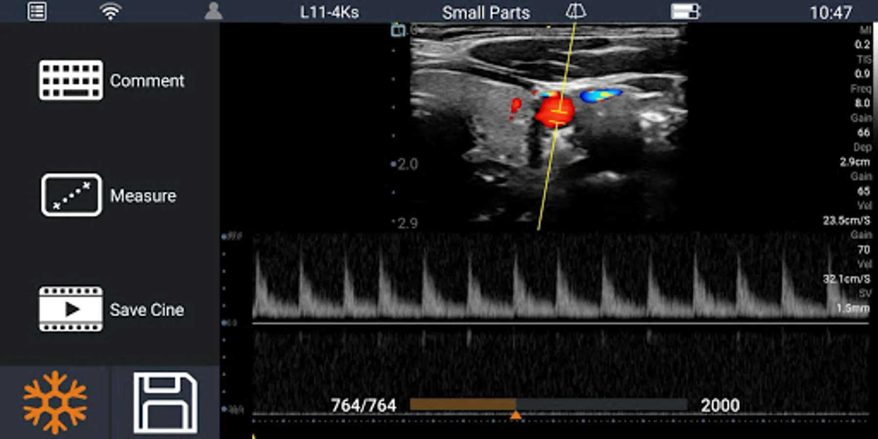 The handheld Doppler diagnostic apparatus is suitable for the examination of abdomen, heart, small organs (mammary gland, testis, thyroid, etc.), peripheral blood vessels, fetus,transrectal, vagina, children, newborn's head, musculoskeletal (routine and superficial), intraoperative and transcranial.The user interface is friendly and the operation is simple.The APK can display real-time image when the APK is connected to the handheld Doppler diagnostic apparatus through wireless network. The users can adjust the parameter value by rich gesture adjustment operation.