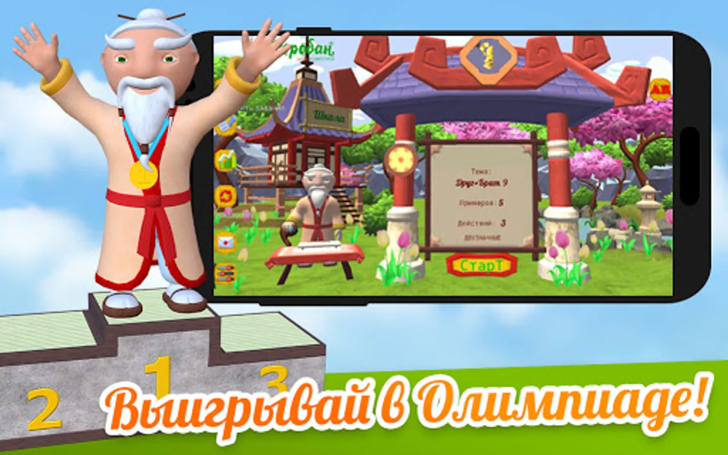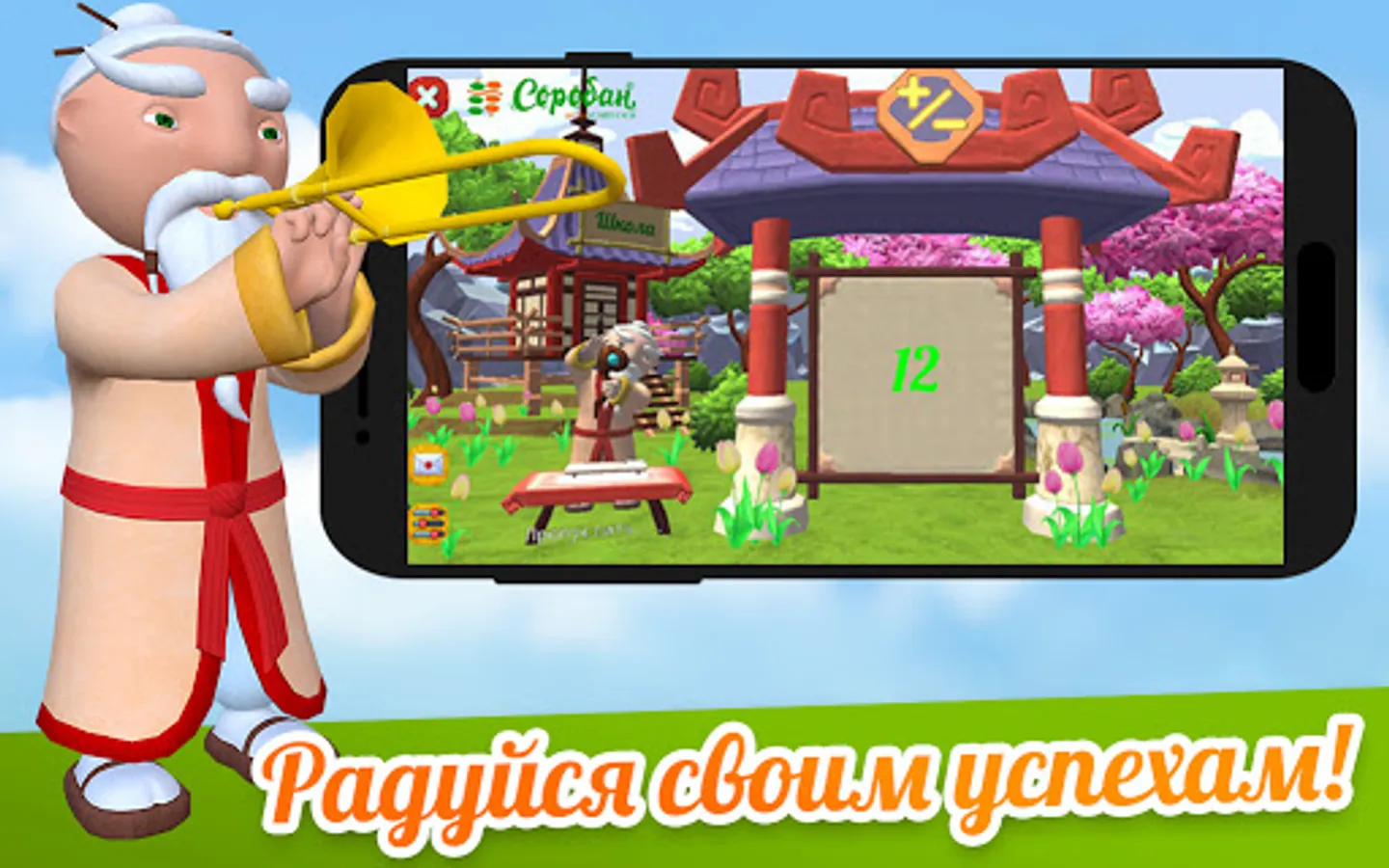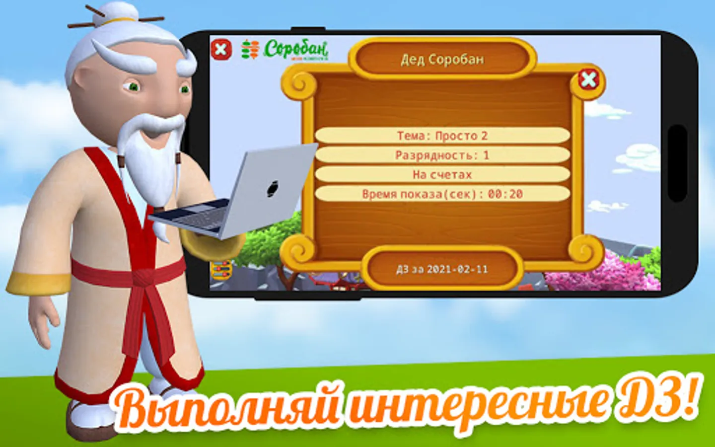 Choose your workload, get Intelligent homework from the Soroban school methodologists, feed the sushi of Grandfather Soroban, dance with him, get rewards, compete with friends, spend time with gadgets for the benefit of your brain.