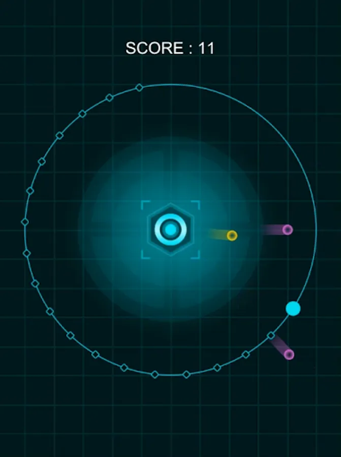 Neon Orbit, dodge bullets with a simple touch. Earn as many points as possible to achieve the maximum score!