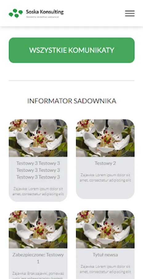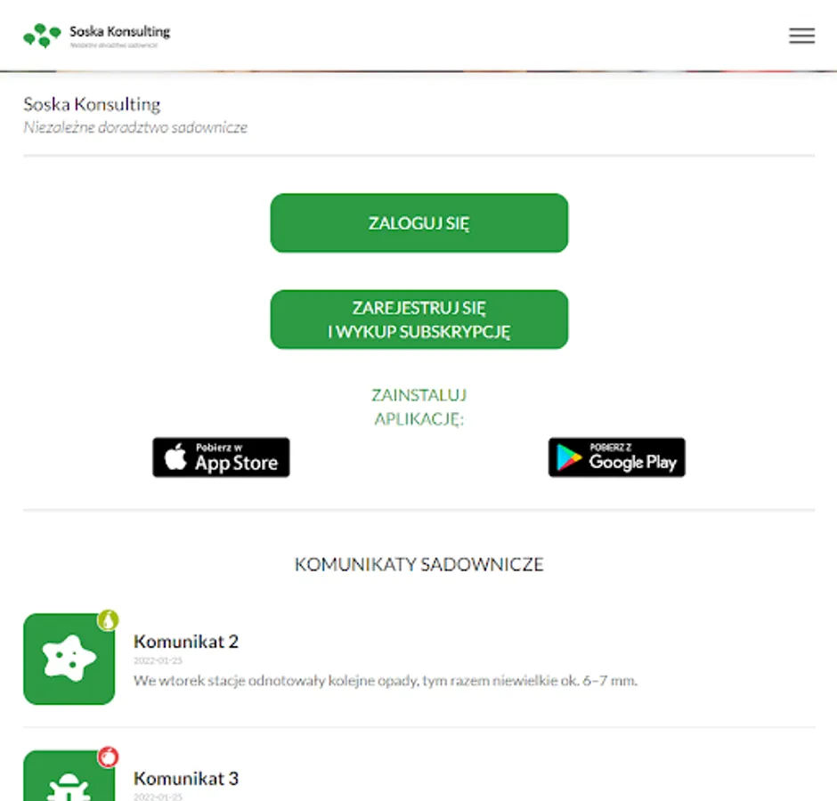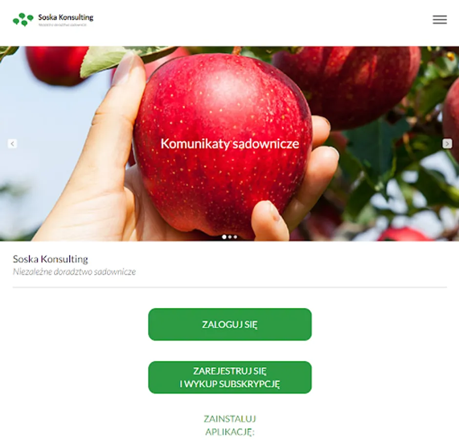 Soska consulting is an independent fruit-growing consultancy in the field of apple and pear cultivation. The aim of the consultancy is to provide fruit growers with an additional dose of knowledge about the production of apples and pears. It can be used to broaden the knowledge and also be an inspiration for activities on the farm. Fruit messages are the basic service for fruit growers in the field of effective plant protection. They are based on data from meteorological stations, pest monitoring and field observations. On the basis of the collected data on diseases and pests, then processed using mathematical models, messages for fruit growers are created, with a proposal of a method of protection. Messages are sent via various channels (to be chosen by the customer): shortened (as an SMS or 'push' notification) and full (via the website and mobile application).
