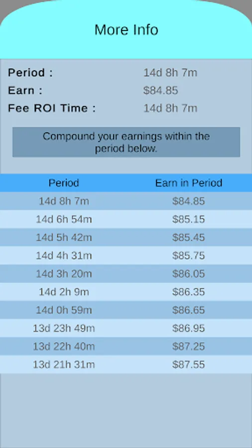 This application does not facilitate any actual cryptocurrencies. It is only a calculator to show the best time to compound earnings. It may be use for other practical cases for calculation other then cryptocurrencies. It also has a build in APR to APY calculator.