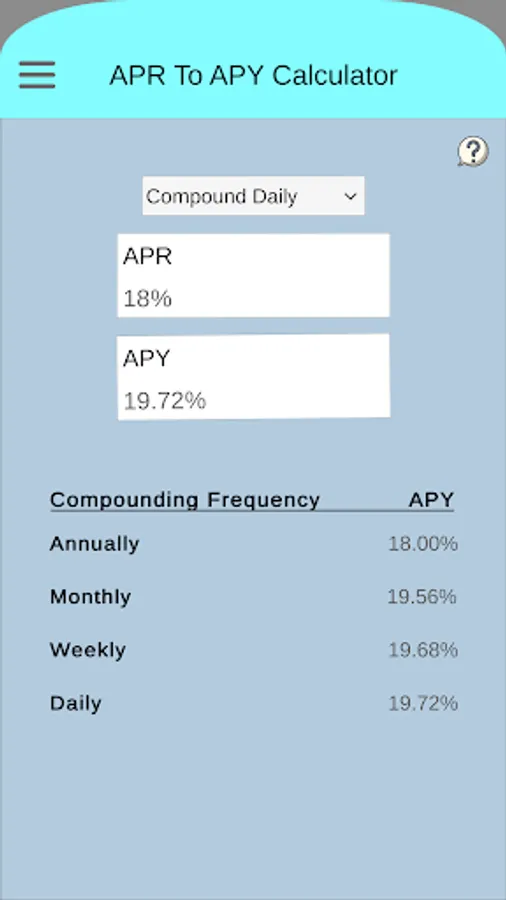■ APY to APR and APR to APY calculator. "Compound Daily, Weekly, Monthly, Annually"