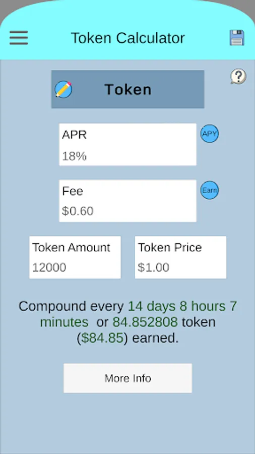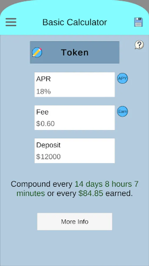 ■ Crypto Compound Calculator lets user save their inputs for later uses. Inputs such as saving the title, APR or APY, fee and deposit.