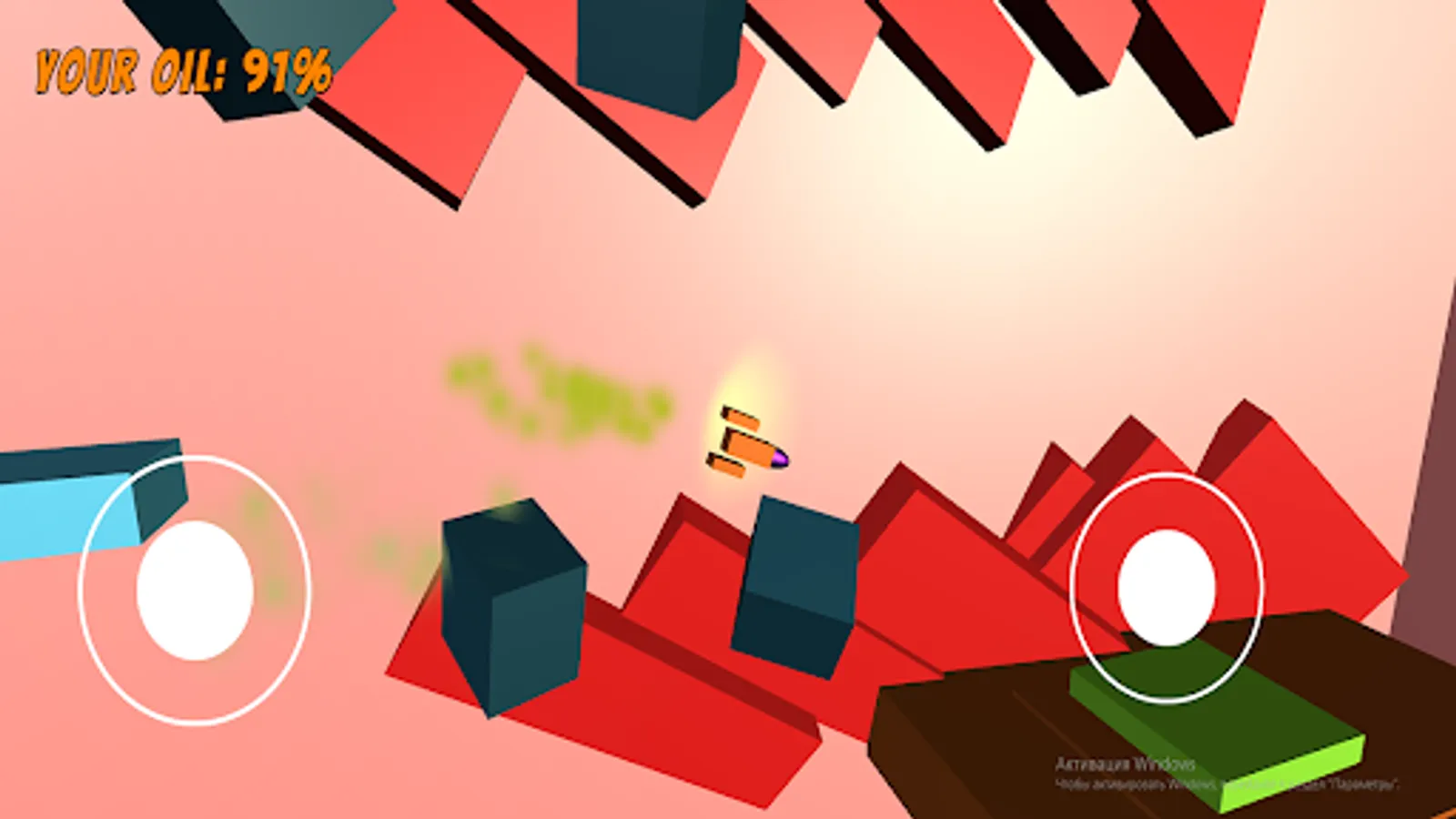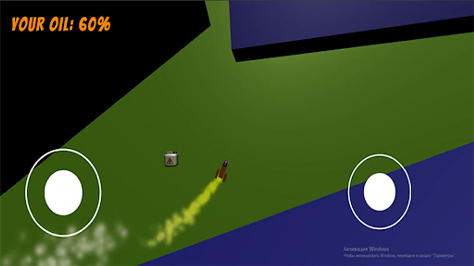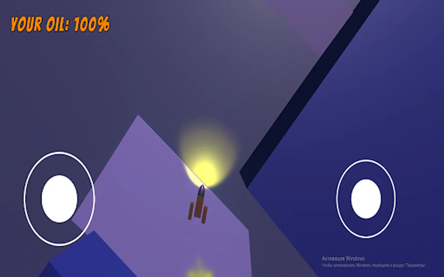 Цель долететь до второй посадочной площадки, избегая столкновений с препятствиями и опустошения бака с топливом.