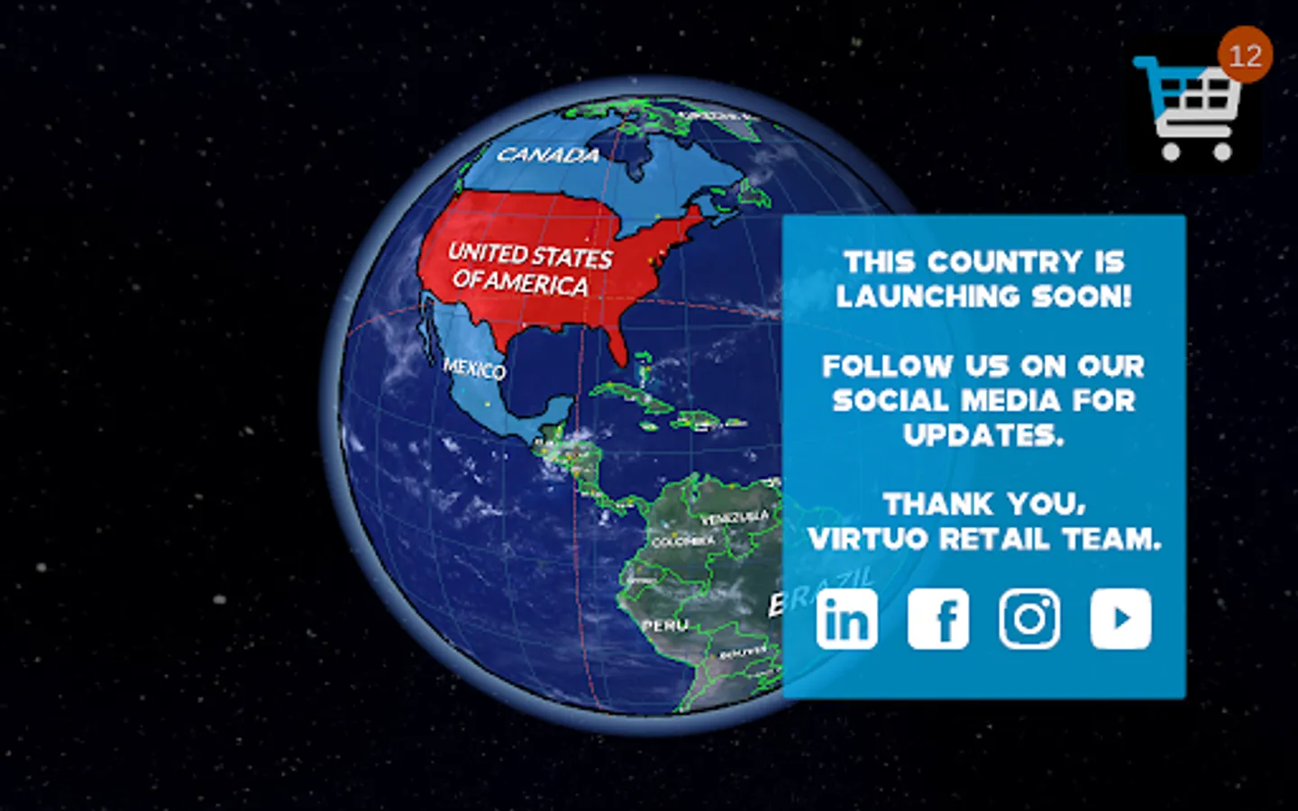 Because Virtuo Retail is a mobile application start-up founded in South Africa, we have uploaded South Africa first. We will continuously be adding new countries, stores, brands and shops onto the App to improve the global experience. At the same time, all existing products are updated by the participating stores on a daily / weekly / monthly basis.