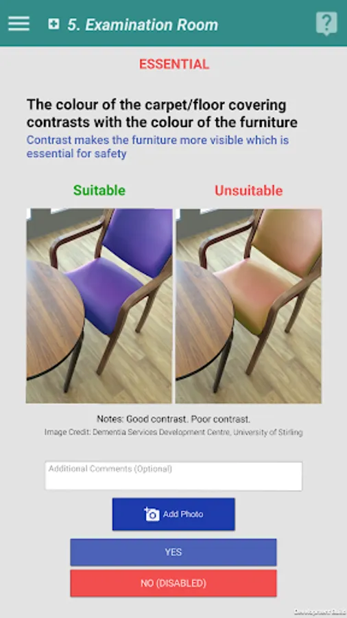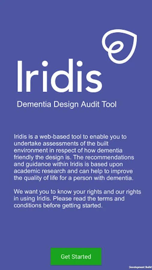 The Iridis app is an assessment tool for dementia design developed by the University of Stirling and Space Architecture (Europe) Ltd. This app is based on the University of Stirling's Dementia Design Audit Tool, Cunningham et al (2011) and is intended for carrying out dementia design assessments of places where people live.