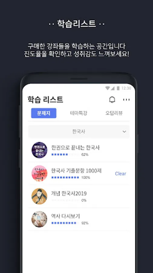 - A place to learn the purchased courses. Check the jindoyul each course and try seongchwiyul also felt along until 100% clear!