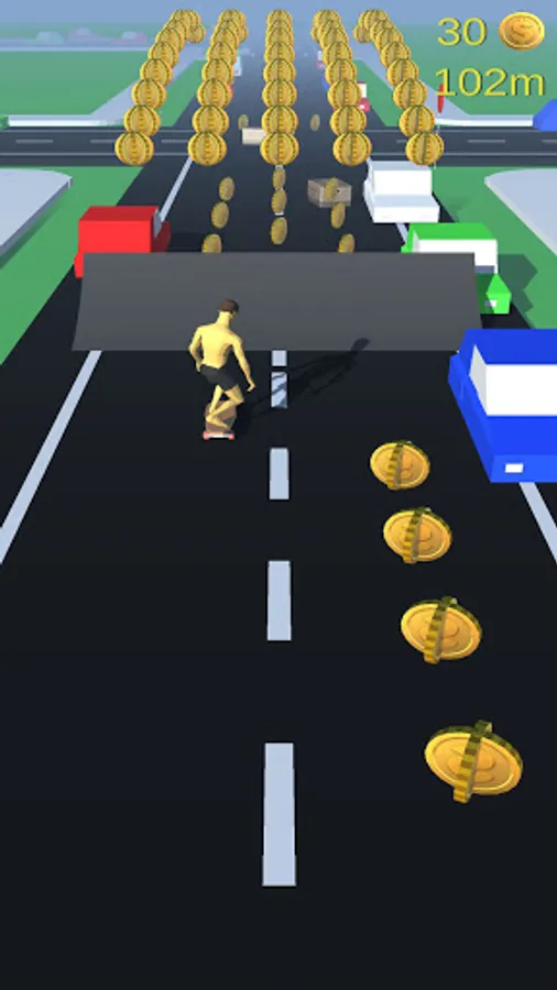 Skate Run 3d is a game with simple controls in which you have to ride a skateboard dodging garbage and cars collecting coins.