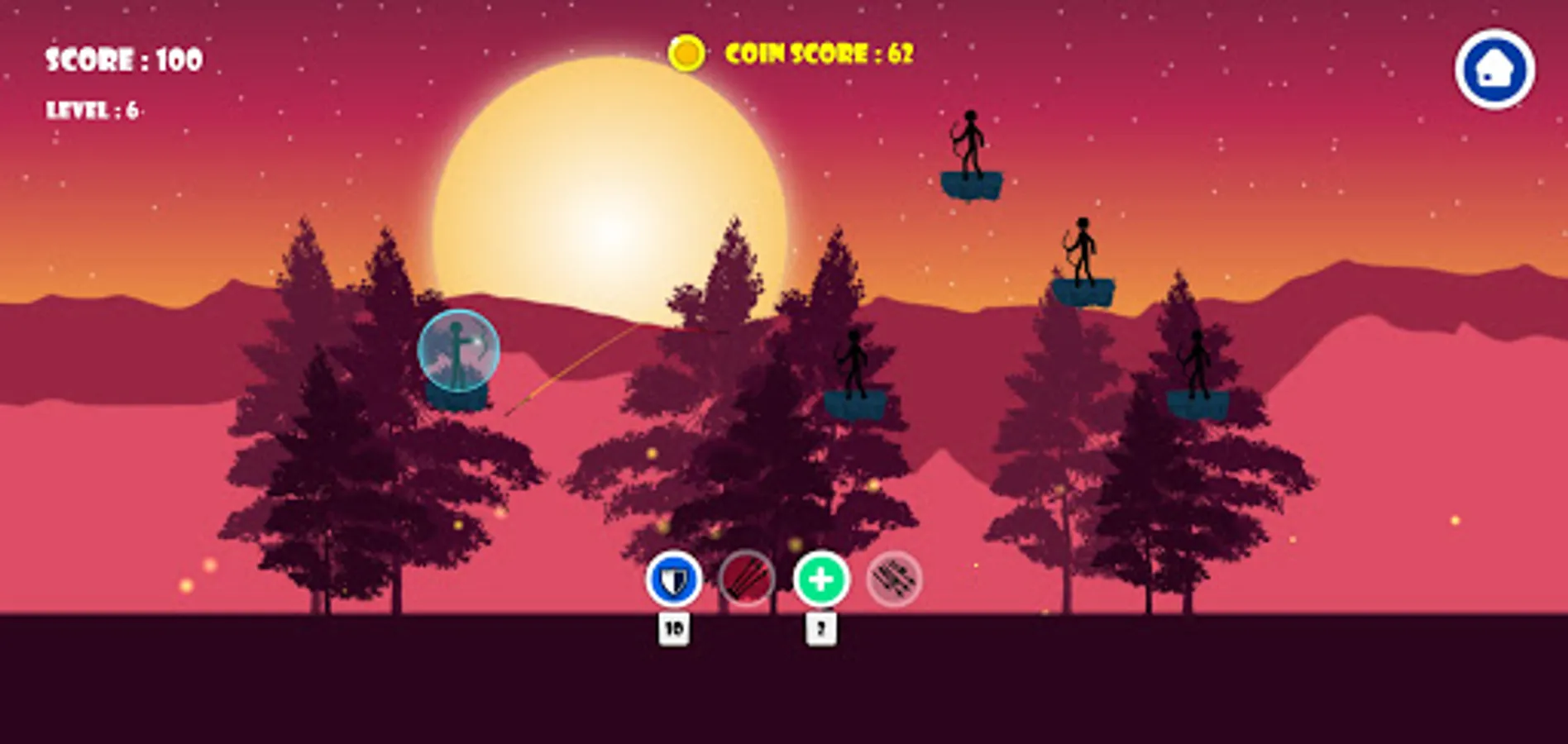 In this shooter game, you control a character equipped with a bow and an unlimited number of arrows! Random enemies will appear and you have to shoot and kill them with your bow before they can kill you. If you are able to score a headshot, enemies will die instantly. The game is level-based and as you progress levels will become more difficult, more enemies will appear at the same time and they will become more accurate, so you have to kill them quickly. There are 40 levels in total and you will have a boss fight every 10th level, so be prepared! There are also 4 types of powerups that you can use in the game. These powers are a shield, heals, multishot, and rain of arrows. You can buy these powerups from the in-game shop using the coins that you get from killing enemies. So, let’s see how many levels you can complete!