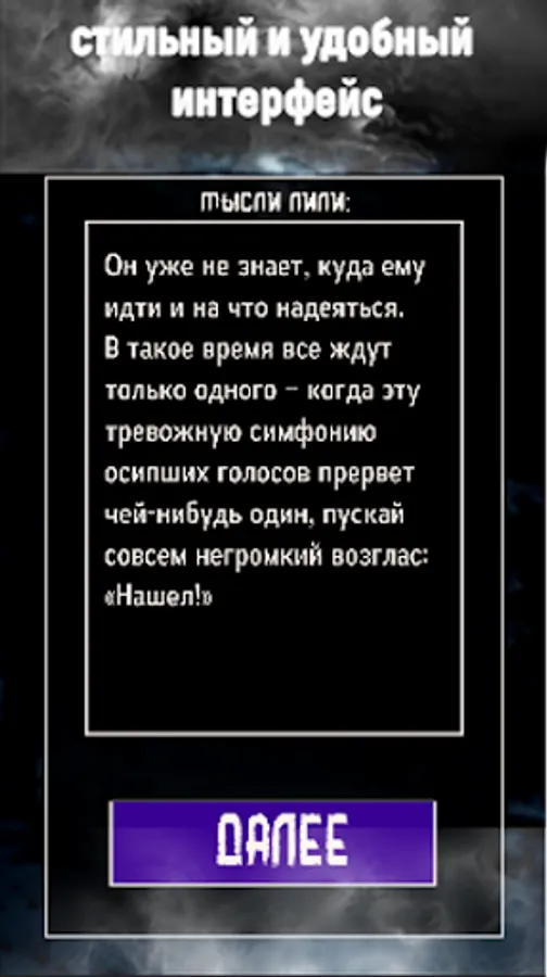 Here you will find not only a fascinating plot and the opportunity to change it, but also beautiful backgrounds-landscapes corresponding to the plot.