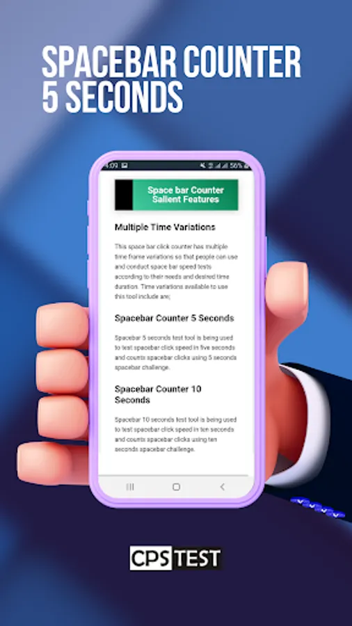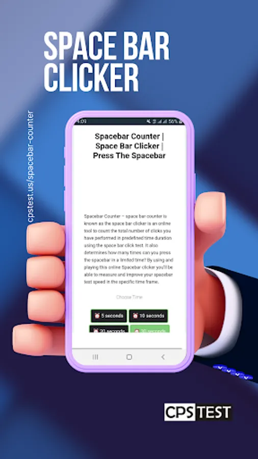 Spacebar clicker allows you to test your finger speed on spacebar key to check how speedily you can press the spacebar button. The faster you click the faster and more cps speed you would achieve.
