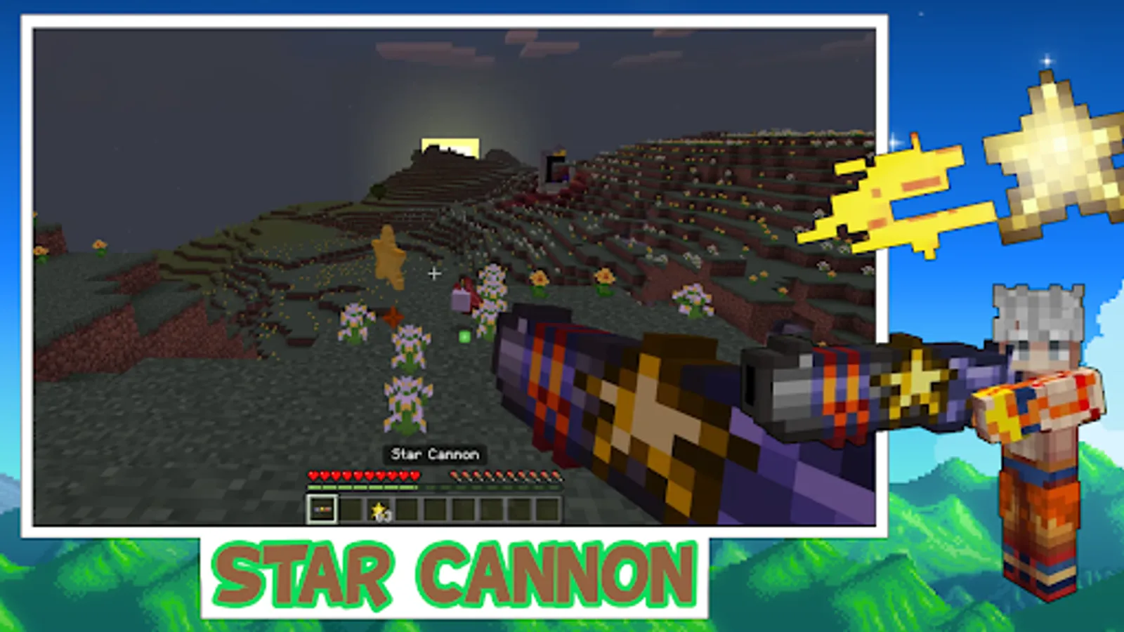 The Star Cannon Mod for Minecraft Pocket Edition is a game-changing add-on that brings the explosive power of the Terrarian universe to your Minecraft world.