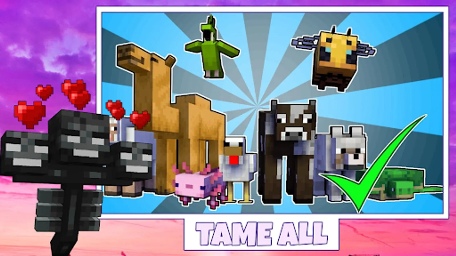Overall, the taming mechanic in Minecraft can add an extra level of depth and strategy to the game, allowing players to create unique companions and allies to help them on their adventures. With the addition of tame all, you can further customize and improve this mechanic according to your playstyle and preferences, you will be able to tame animals and mobs from other addons even if such a function is not available there.