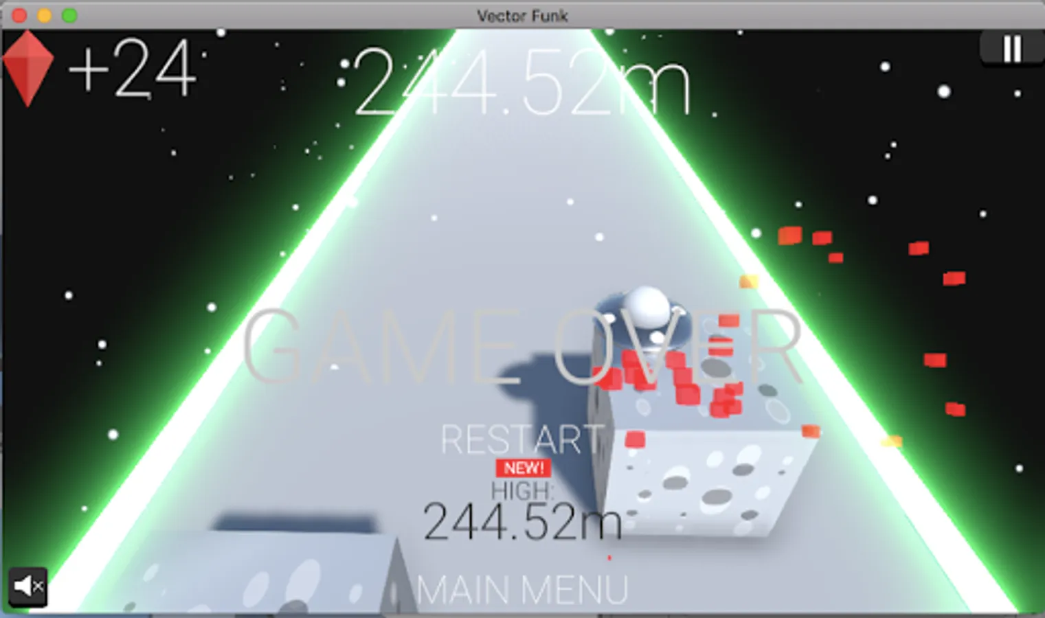 Blocks. Spheres. Pills. As a small white ball, traverse across the infinite universe of Vector Funk and discover the addicting wonders of minimalistic endless running. Accumulate your high score to unlock new themes. Collect points and unlock new costumes for your character using crystals.