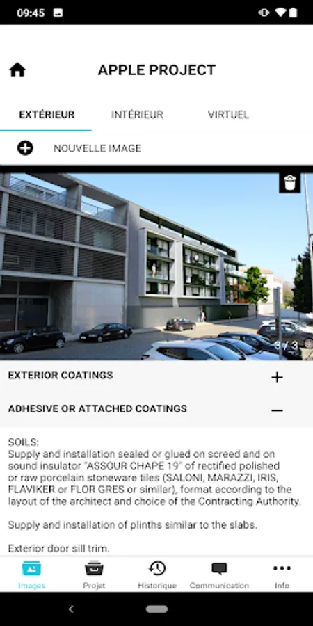 The application provides all technical and legal documentation, images, technical specifications and augmented reality of the projects. It incorporates a communication channel and action history and can be consulted from a computer or any mobile device.