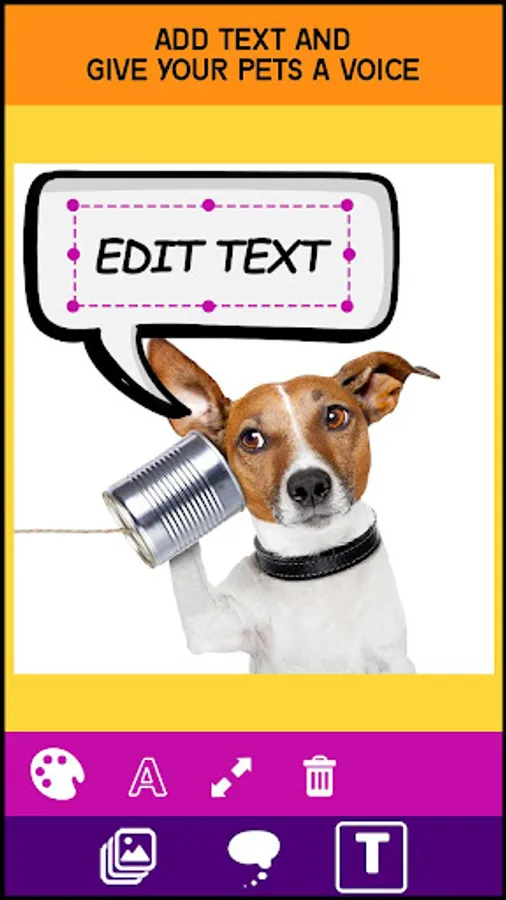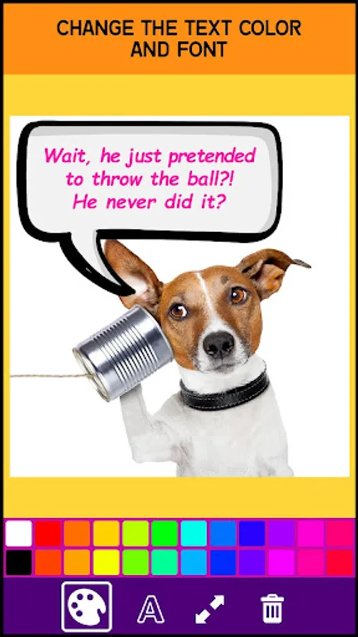 Whether you plan to use text stickers or you want to write your own words with this add text to photo app there are no boundaries to what you can do to your pics with this Speech Bubble Photo Editor. When you use this comic maker with speech bubble on pictures the results will be epic. Use the option to insert your bubble text on photo and give your images a comics style vibe and interesting dialogues or comments that will catch everyone's attention. This speech bubble maker allows you to create a special area in your pics just for text and provide a color contrast so your message can be seen clearly. Change the font of your bubble text inside your picture speech bubbles and customize the color as well so your speech bubble on photo looks completely unique.