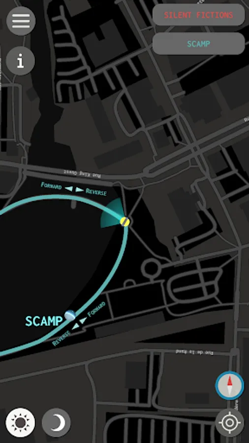 For the 5th edition of EIM 2019, two artists were invited to create interactive sound paths. These are audio experiences rooted in the real world. Video game tools - Unity and Wwise - have been used to create a virtual world parallel to ours in which artists have composed, arranged and installed sound elements that respond to the walker's actions and movement. The user installs a mobile application on his "smart" phone which mainly uses geolocation, as well as some sensors native to this type of device, to explore and interact with the different works.