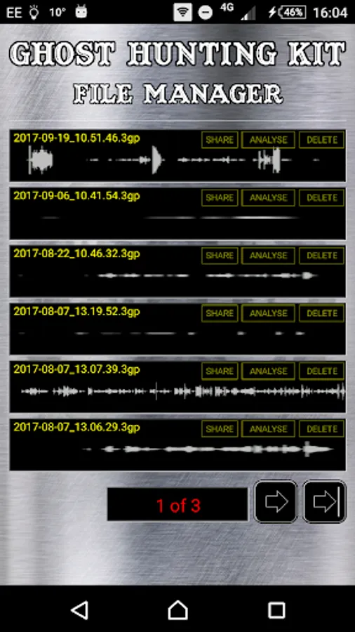 A folder is created on your device called "SpottedGhosts", in there you will find folders for all of our apps. Go into the "GhostHuntingKit" folder, then into the "Recordings" folder, here you will find all your recordings as .3gp.