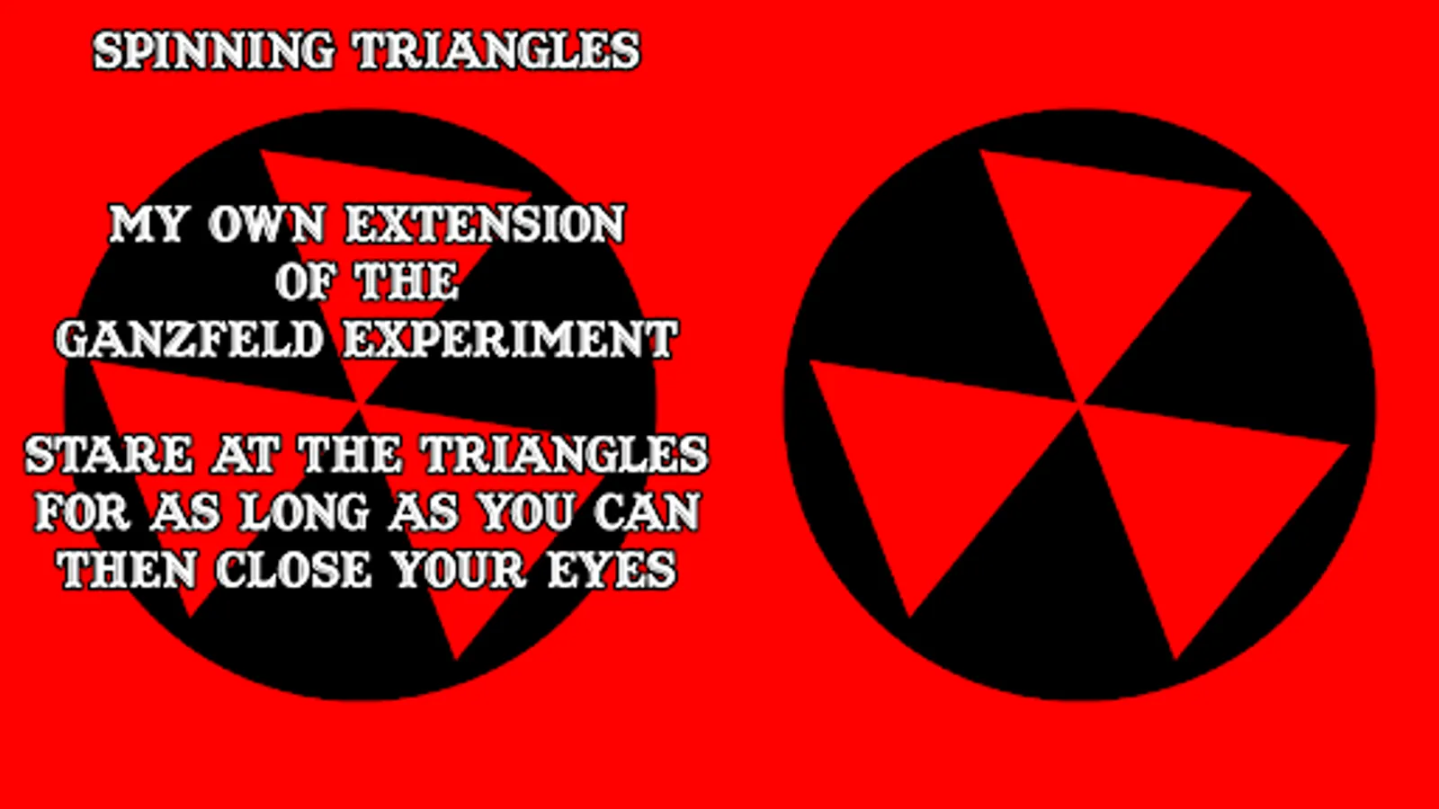Three hypnotic red triangles spin inside a black vortex, surrounded by flashing red light.