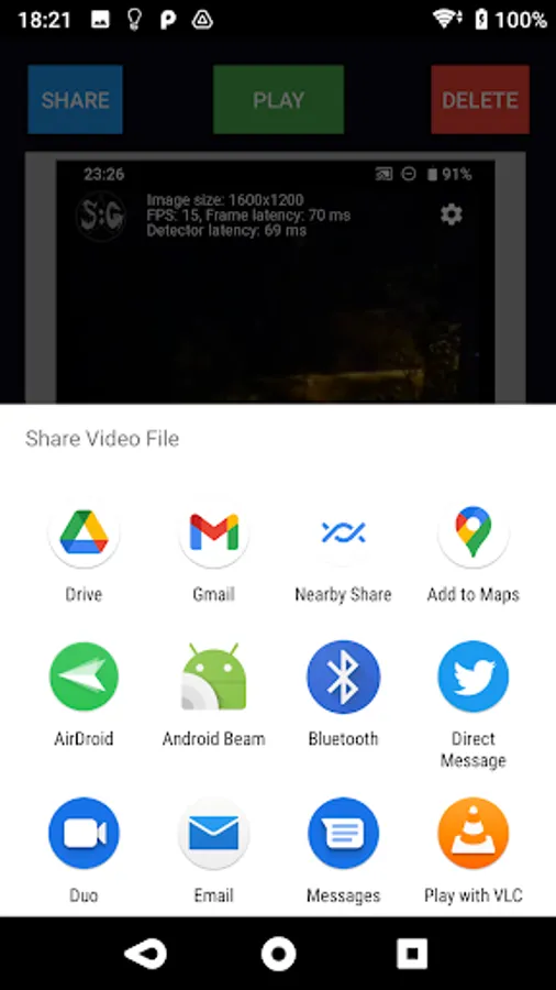 All the video files are saved as .mp4, with easy access to view and share using the Folder button.