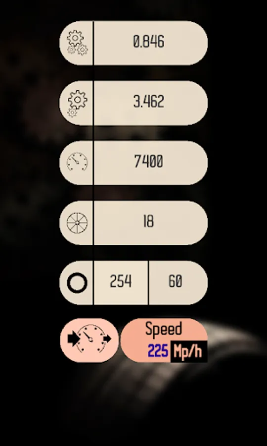 Type the current & final gear ratio, the wheel & tire dimensions and the RPM...and find the speed in kmh/mph/knots!!!