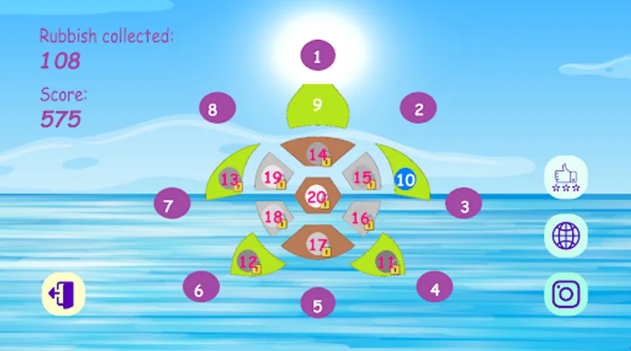 Do you agree that the environment should be clean? All of this pollution out there stays to the planet and ends to us. In this game your goal is to collet all of the rubbish that you meet. You will visit 20 places (2D). In your screen you can see the number of the total items that you should collect (usually ~10 Items per place). After cleaning a place, the next will be available. Remember that the pollution will not wait us to clean it forever. For each place you have specific time remaining. Please clean carefully!! Good luck!!