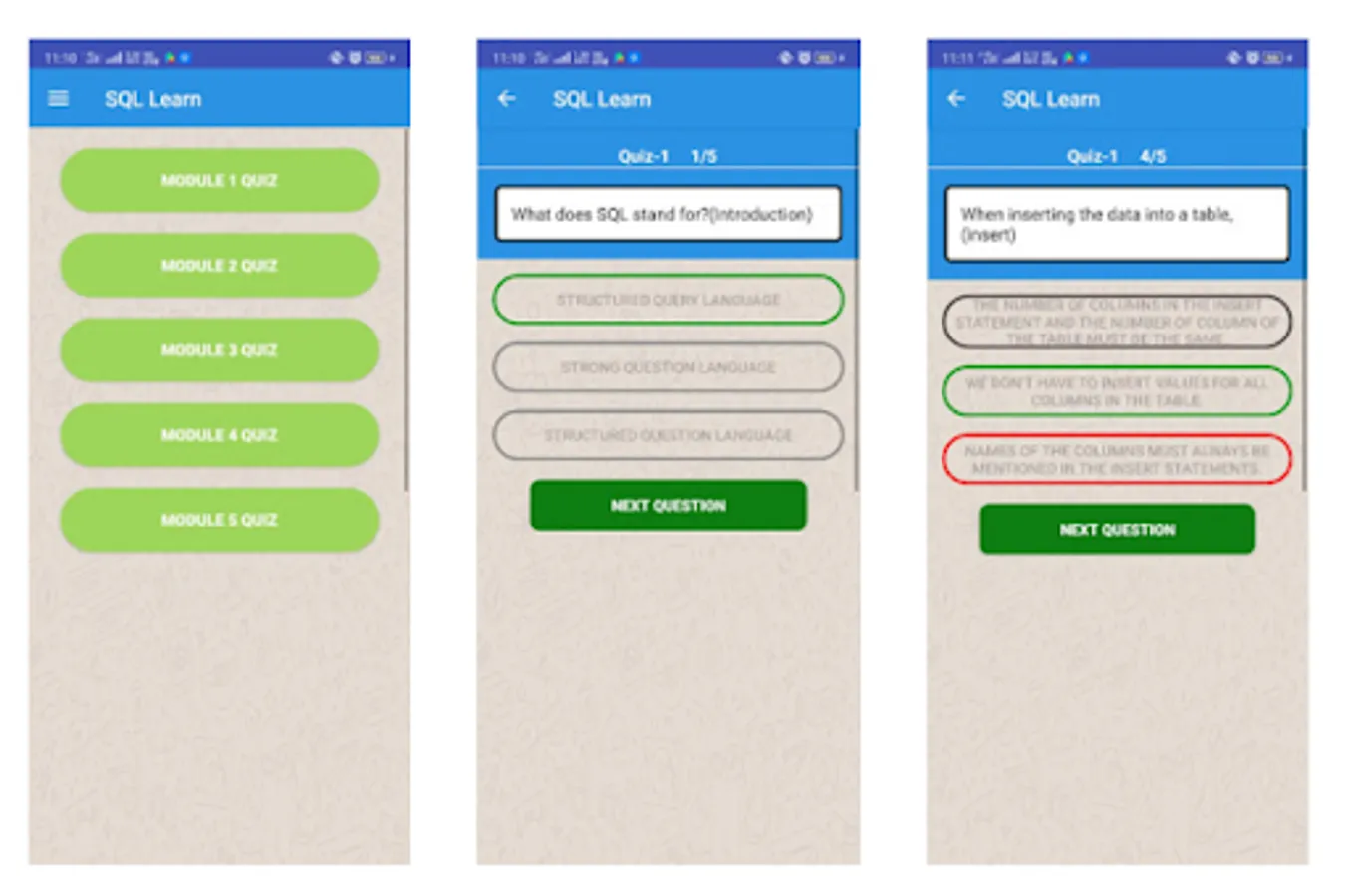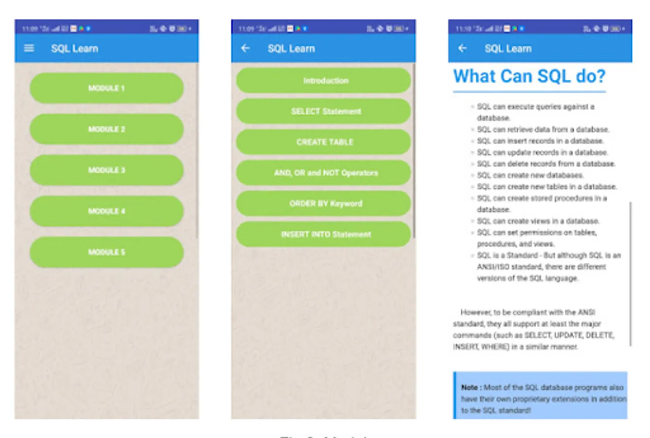 SQL Learning application is utilized to learn SQL (Structure Query Language) without any preparation for novice. SQL learning Application is basically used for understudies who need to take in SQL without any planning. There are a couple of modules and each module contain test and question. To run the queries, these numerous requests you rise, and you will discover the arrangement using the application.