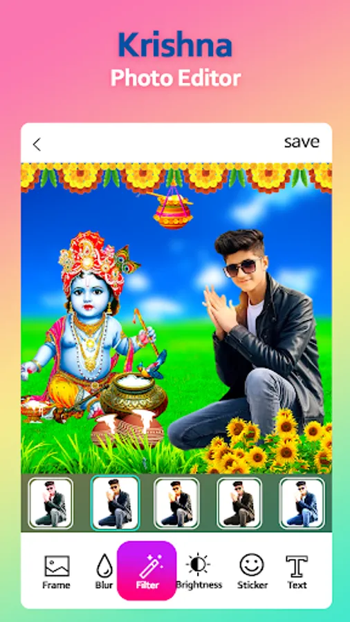 ✔ Give different effects to your photos with lord krishna Photo Frames app
