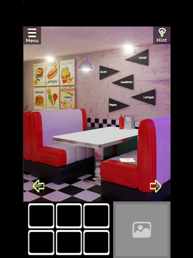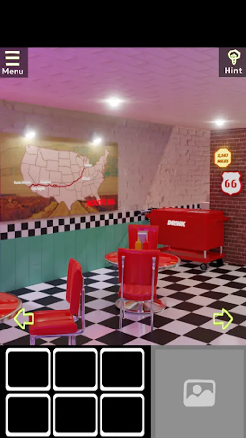 This game is an escape game based on the theme of a diner or casual restaurant with an old American atmosphere.