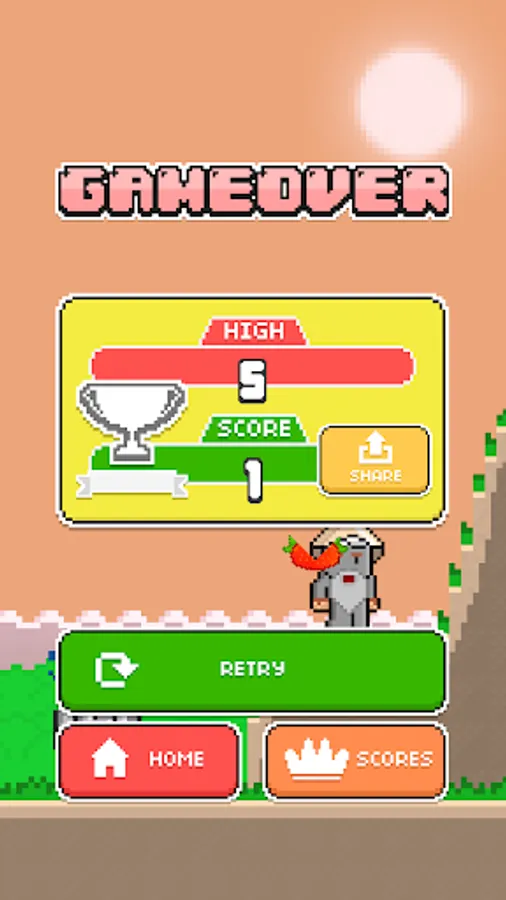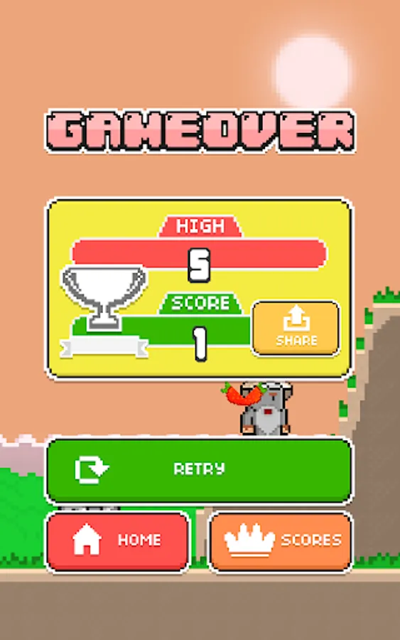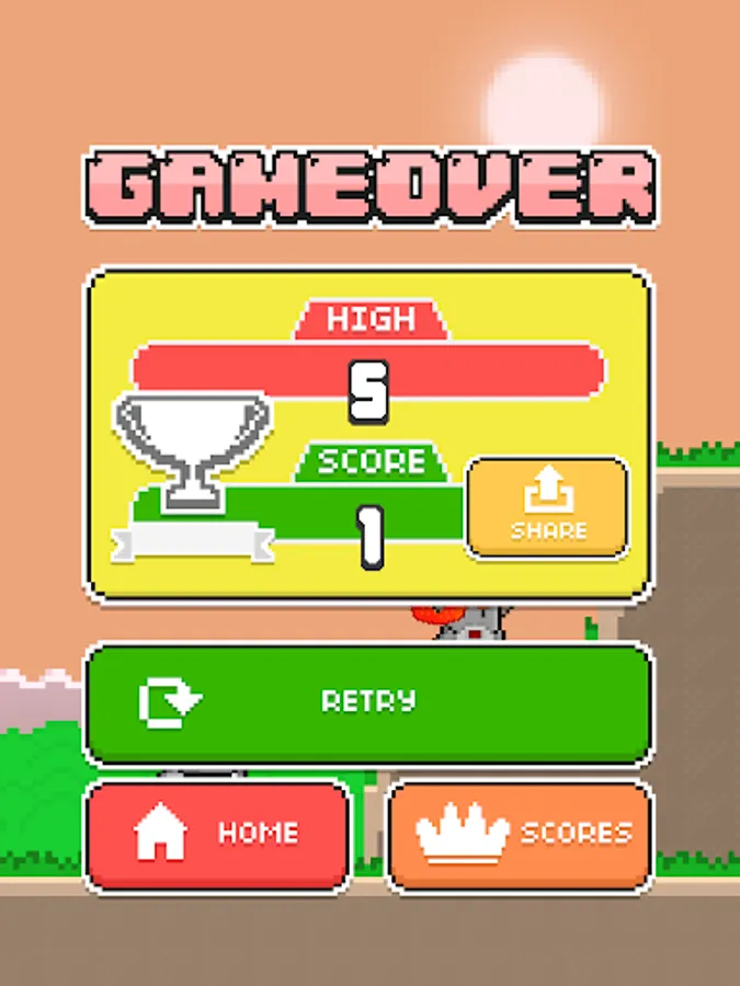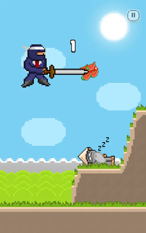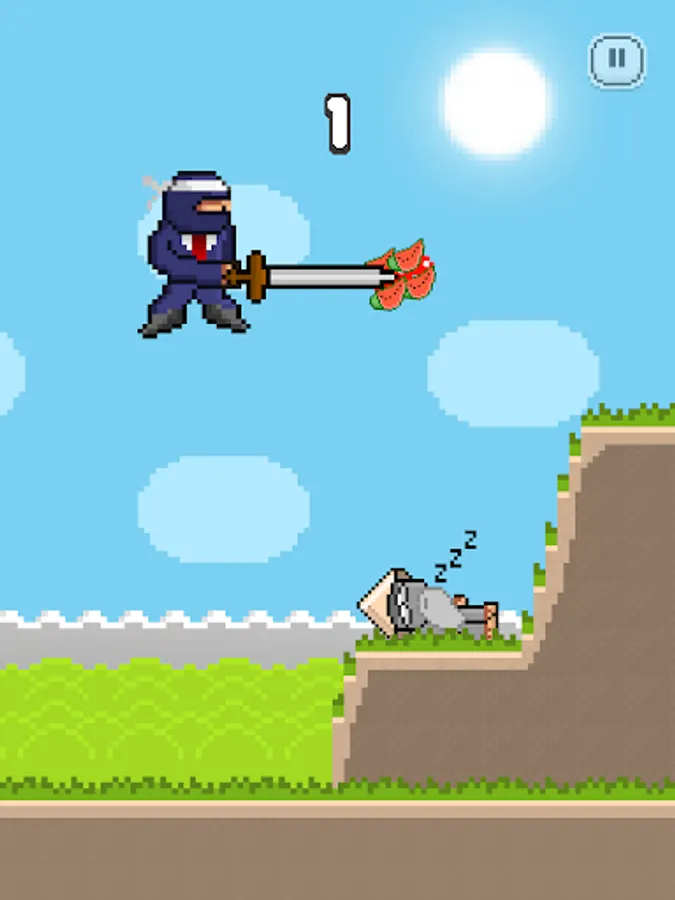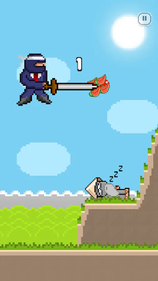 Tap to jump and tap again to hit a falling fruit.