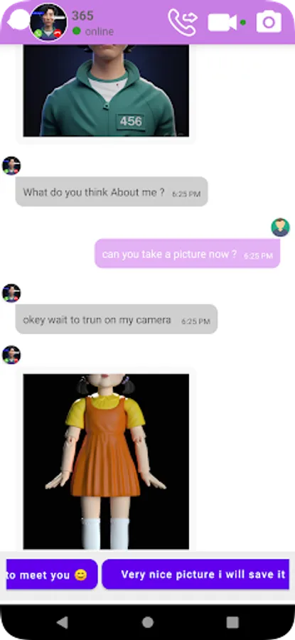 Do you want to call, video call or chat with Squid Game caracters !! now it’s easy! Here you can call and chat with 365 Squid Game ; use this app « Squid Game S2 in Fake call » ask her what you want about any thing .
