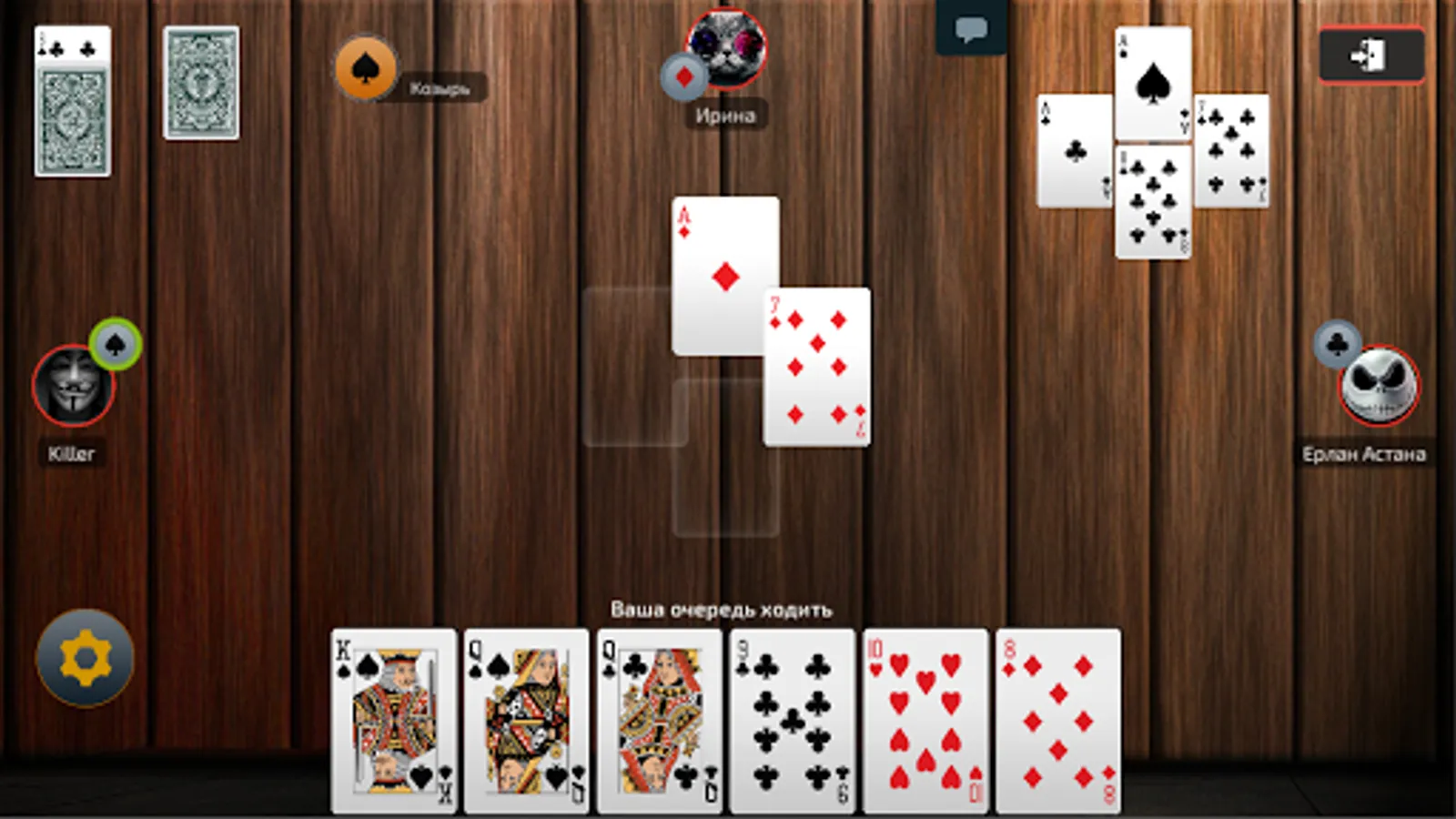 Multiplayer online team game of Belka cards, widespread among the residents of Kazakhstan. The aim of the game is to get the most points based on the results of the hands. The winner is the team that opens all 12 eyes. The winning team can also be determined ahead of schedule if, according to the results of one of the distributions, it collects the maximum amount of bribes in the distribution - 120, in this case it is considered that the team won naked.