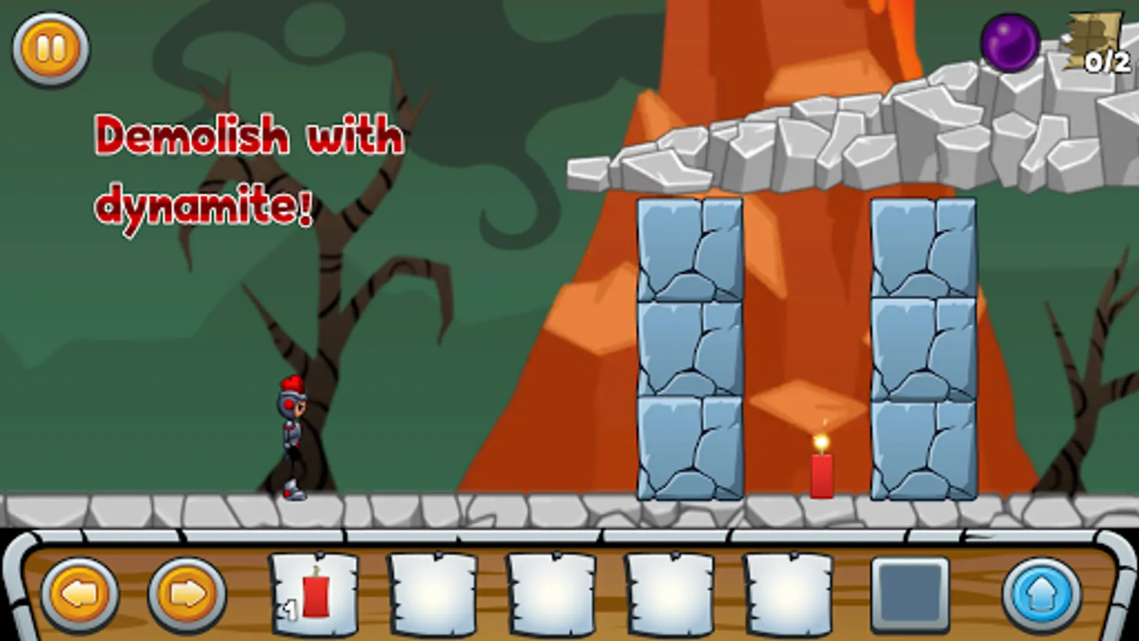 Use your ability to drag and drop objects form your tool bar into the game world to help Linus on his quest to save Princess Linia and restore peace to Stickland. These objects will help you overcome various obstacles and include: platforms, trampolines, stones, dynamite, and more!