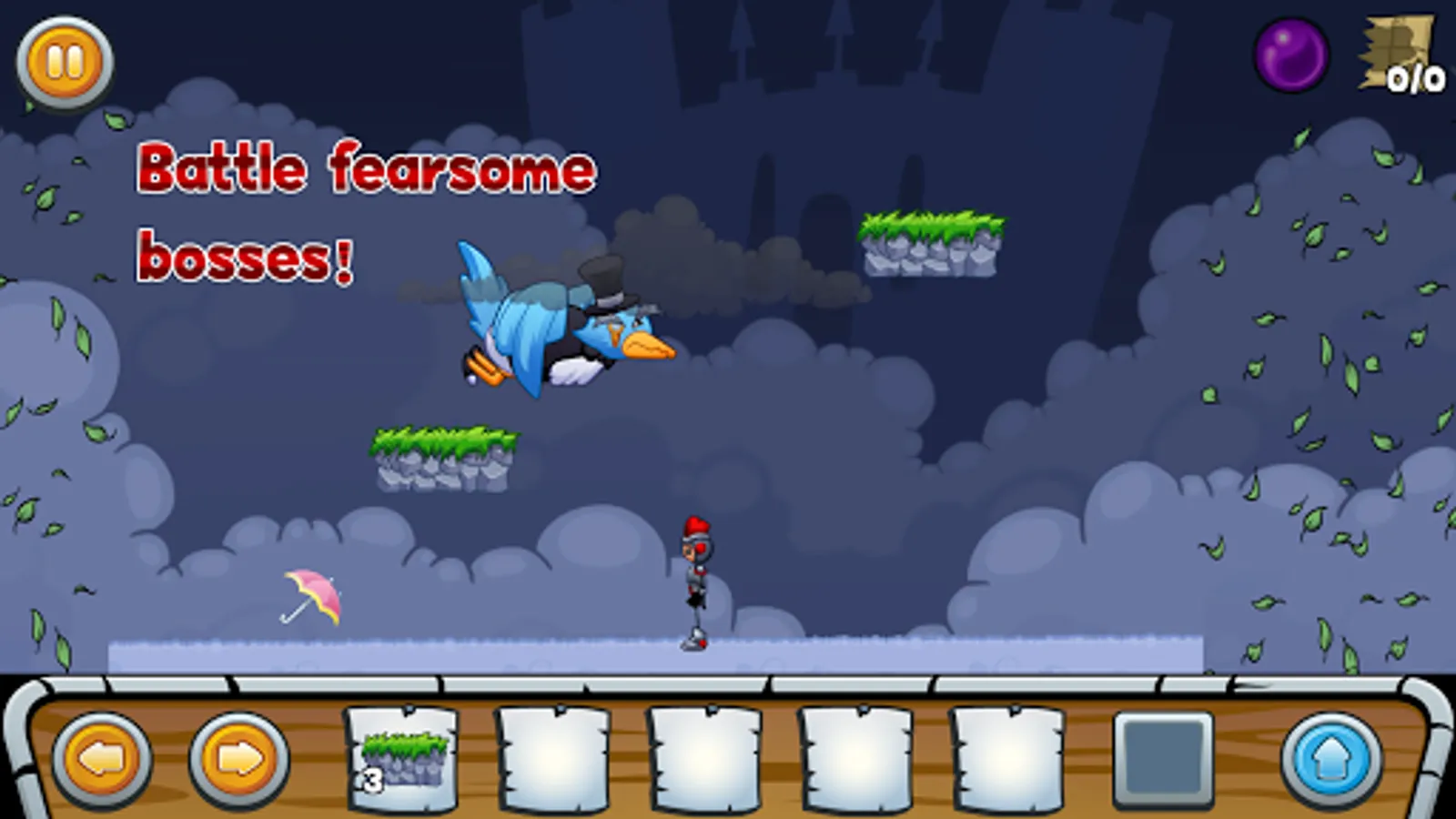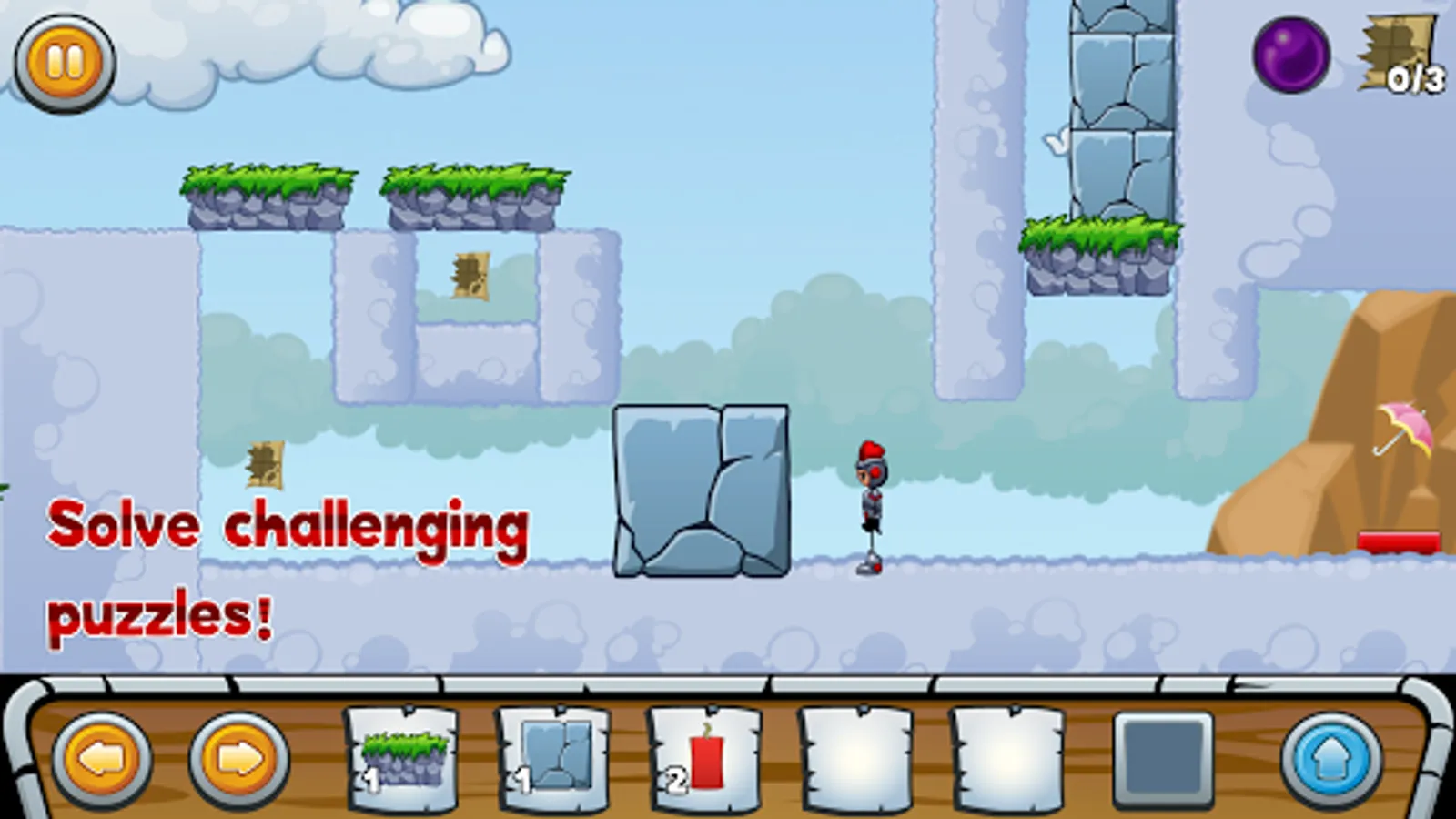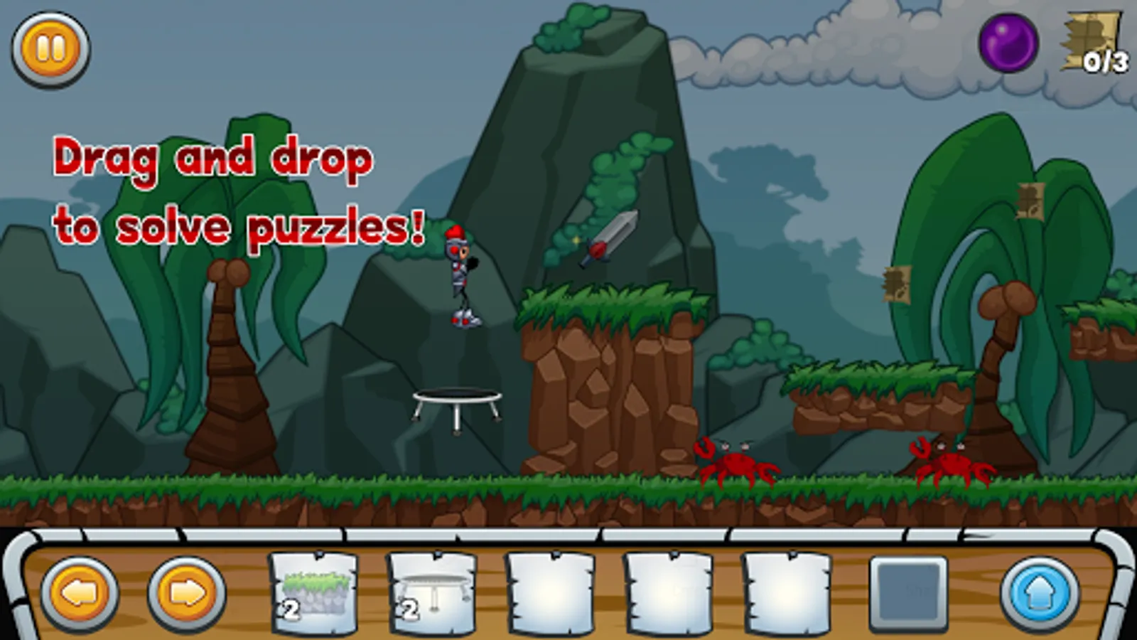 Use your ability to drag and drop objects form your tool bar into the game world to help Linus on his quest to save Princess Linia and restore peace to Stickland. These objects will help you overcome various obstacles and include: platforms, trampolines, stones, dynamite, and candles.
