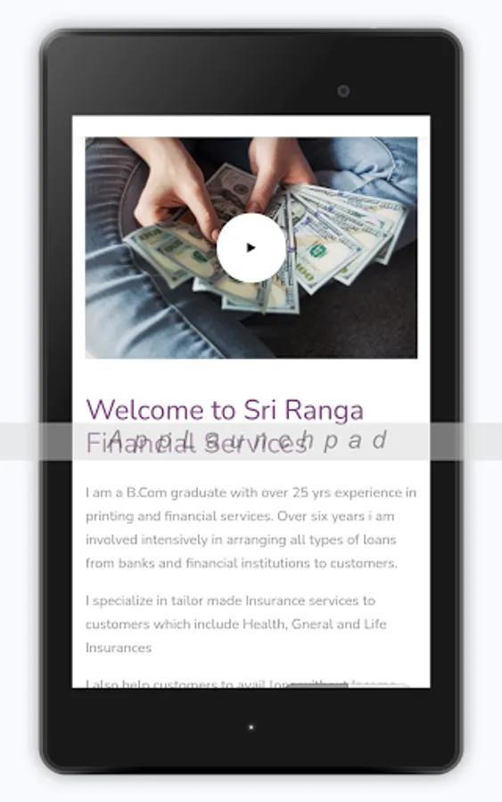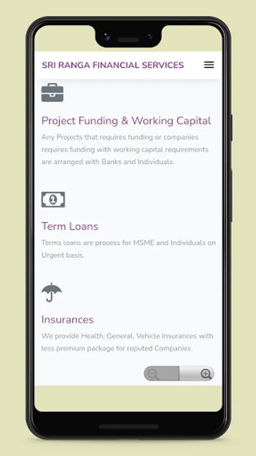 Welcome to Sri Ranga Financial Services. We provide support to Individual or Company to avail Loans from Banks and Financial Institutions against Collateral or with no Collateral. Capital Finances are arranged for Projects and Companies with HNI and Banks. We provide Individual and Companies with Customized insurance services.