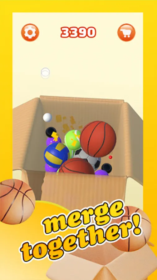 구슬 → 골프공 → 스쿼시공 → 당구공 → 테니스공 → 배구공 → 축구공 → 농구공 순으로 합성되며, 박스 밖으로 공이 나가기 전까지 공을 많이 합쳐 높은 점수를 얻는 것이 이 게임의 목표입니다.