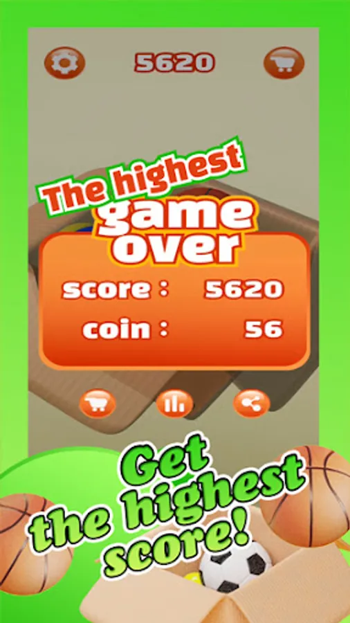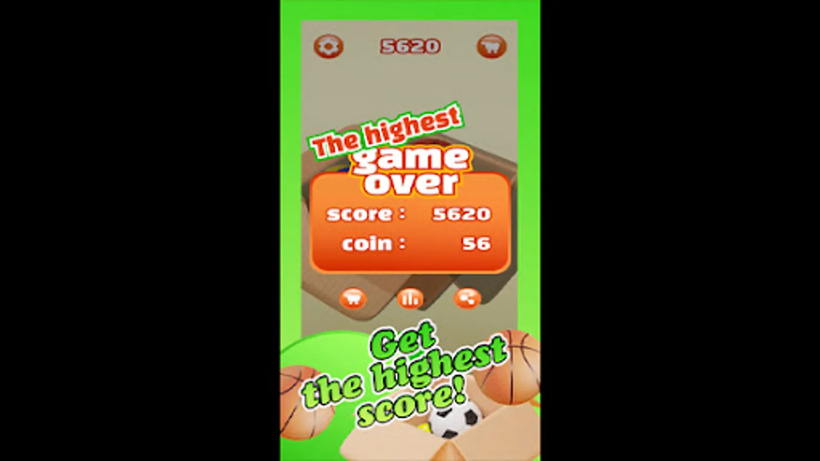 공중에서 스폰되는 공을 상자 안에 채워 넣는 게임입니다. 동일한 공을 만나면 다음 단계의 공으로 변경됩니다.