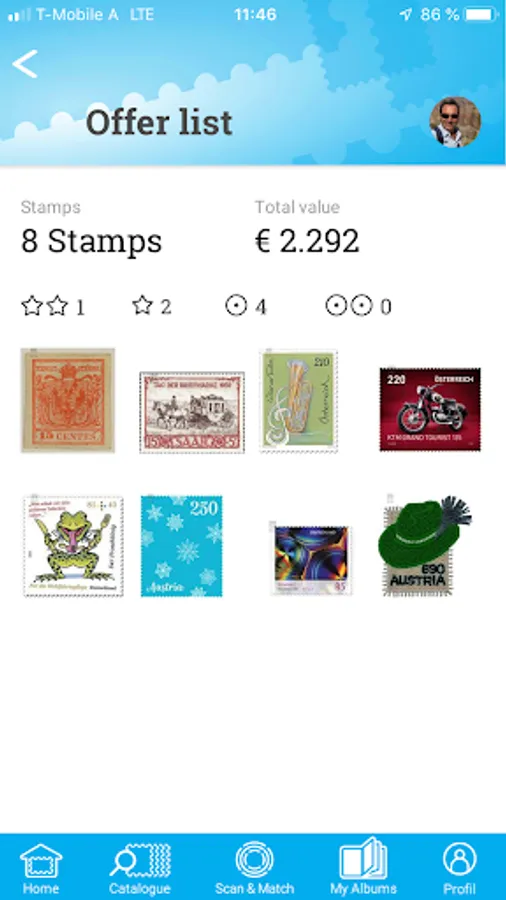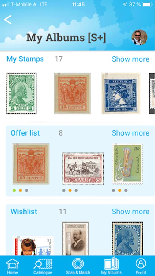 • Keep track of stamps you are searching or offering in the wish- and offerlist. Find other users in our community that search or offer the same stamp and write them directly in our chat.