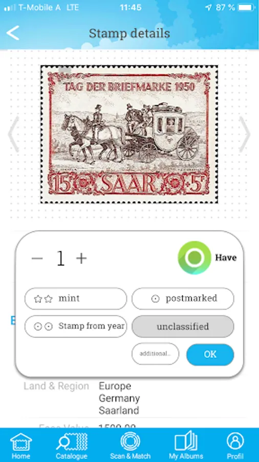 Scan your stamps and find out more about them immediately! Browse in the online catalogue, determine the value of your stamps, and offer them in Stamp-Store.