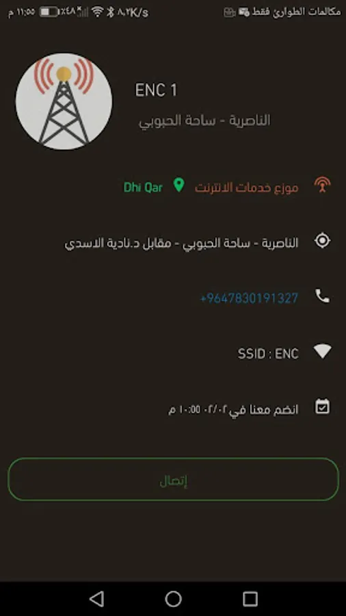 ENC Abraj is an Application that lets people who live in Southern Iraq to find all the ISP towers that belongs to ENC , show their location on map , contact information , and give them the details of nearby ISP towers .