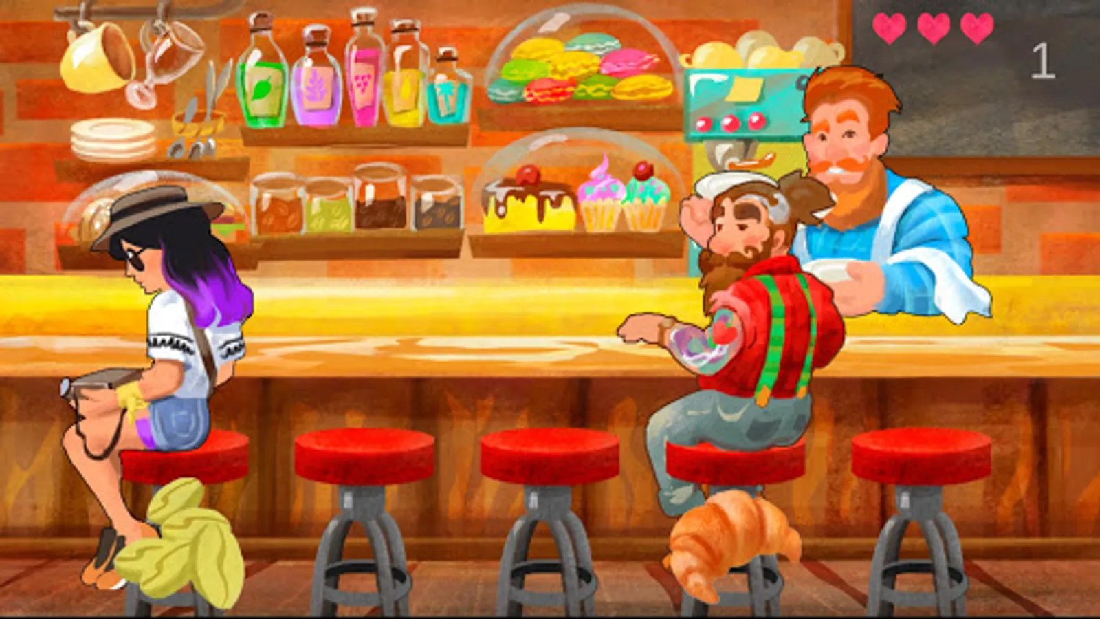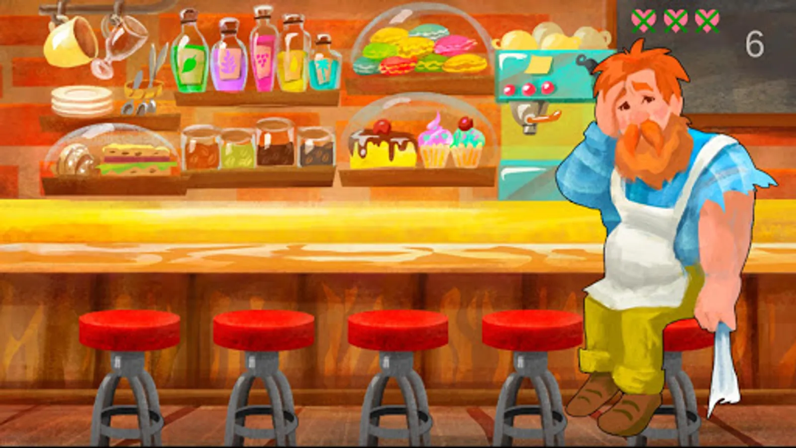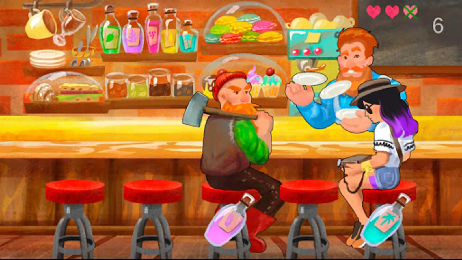 In this little piece of entertainment softawre you controll, bearded hipster bartender serving bearded hipser lubmberjack customers with wide variety of food and beverages. You are doing that by finding and clicking on requested item on the shelf. Simple and fun concept. Strongest part of the game is art. Colorful and polished. Gameplay is simple and in a sense game seams to be rushed, but this is understandable given the art. You should try it out.
