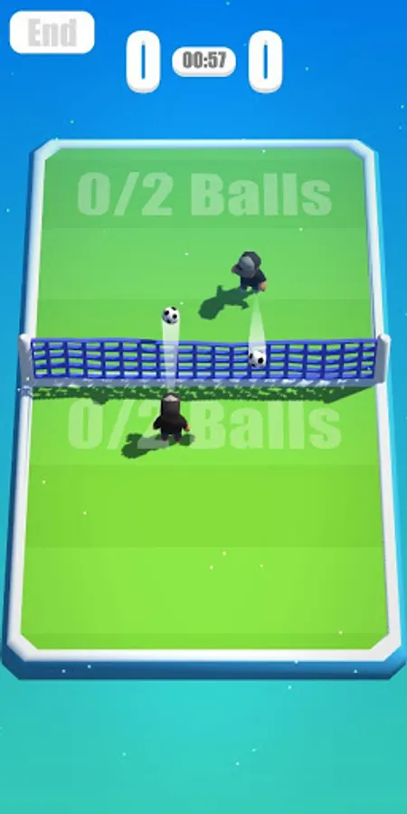 Throw two balls to the opponent's side and defeat him