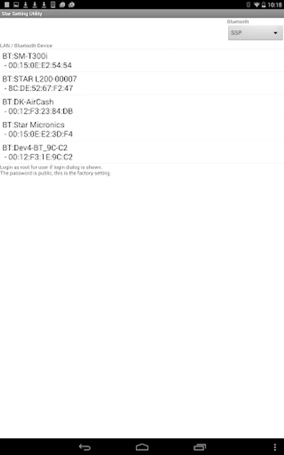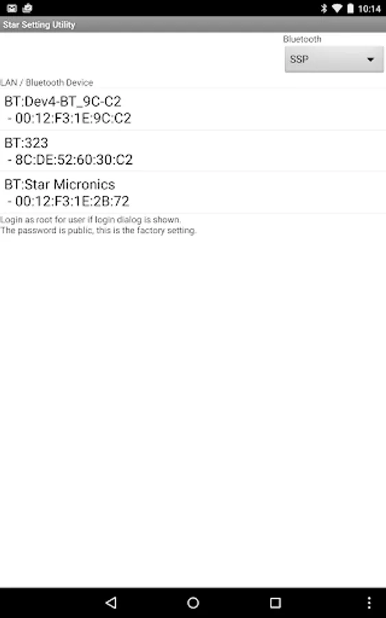 In the case of Bluetooth setting, the devices which are not Star Micronics products may be displayed on the list. Please do not use this tool other than our product.