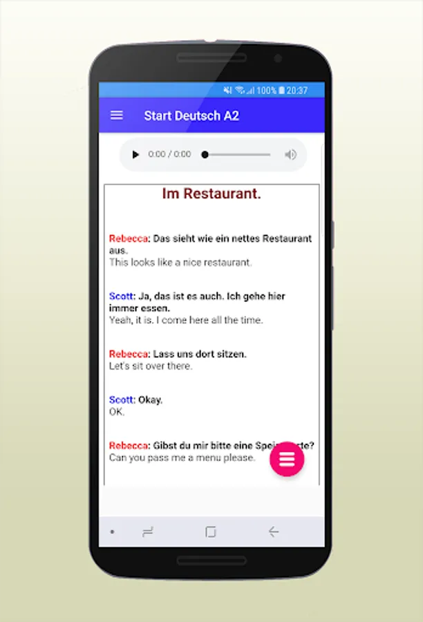 So you can learn German in 20 minutes daily and at the same time do the dishes, go for a walk or just a little doze. Oral Part Speaking A2 brings you into a relaxed, receptive state, and thus manages to teach you a lot in a short time. Sounds good? Then give it a try