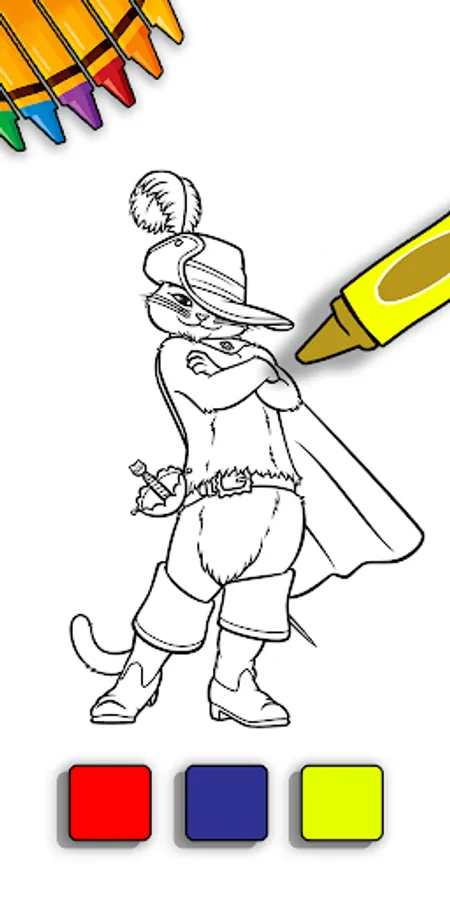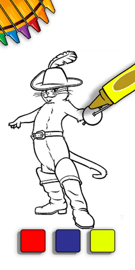 Puss In Boots Coloring journey! Use our interactive coloring Puss In Boots book as a canvas to express your creativity by downloading the Puss In Boots Coloring Game APK for free. Come along with Puss as he talks English, leads you on a spooky adventure, and changes into a cuddly cat. This software is not for the weak of heart because it has scary features and exhilarating gameplay. Play Puss In Boots coloring for hours of pleasure on your computer, smartphone, or internet. Red is one of the hues you may use to give your images life. Don't pass up the opportunity to converse with Puss and even Vaasa in this thrilling and original game. Download right away to get started on your trip!