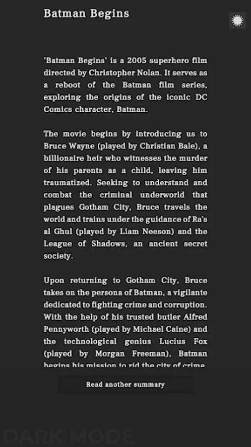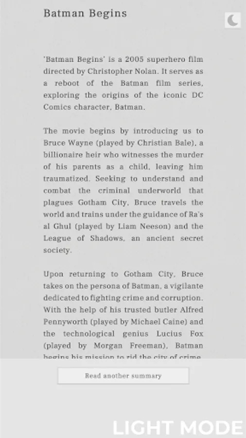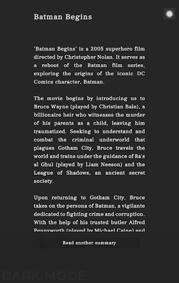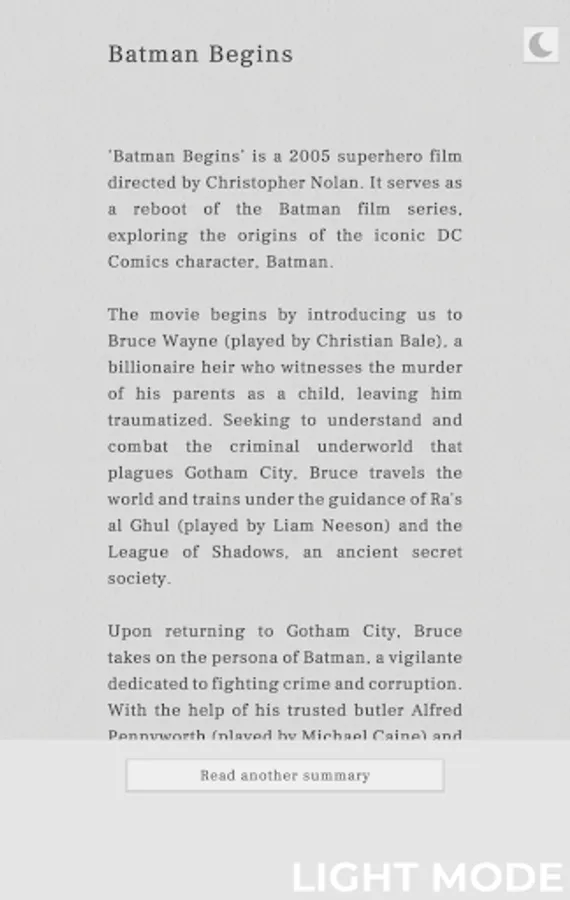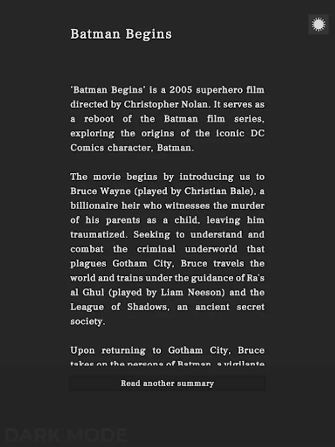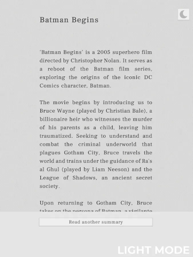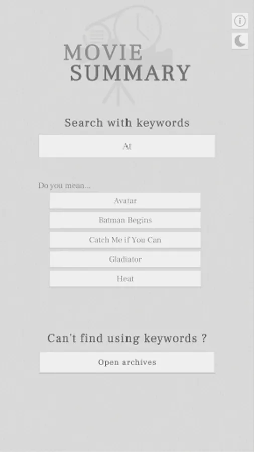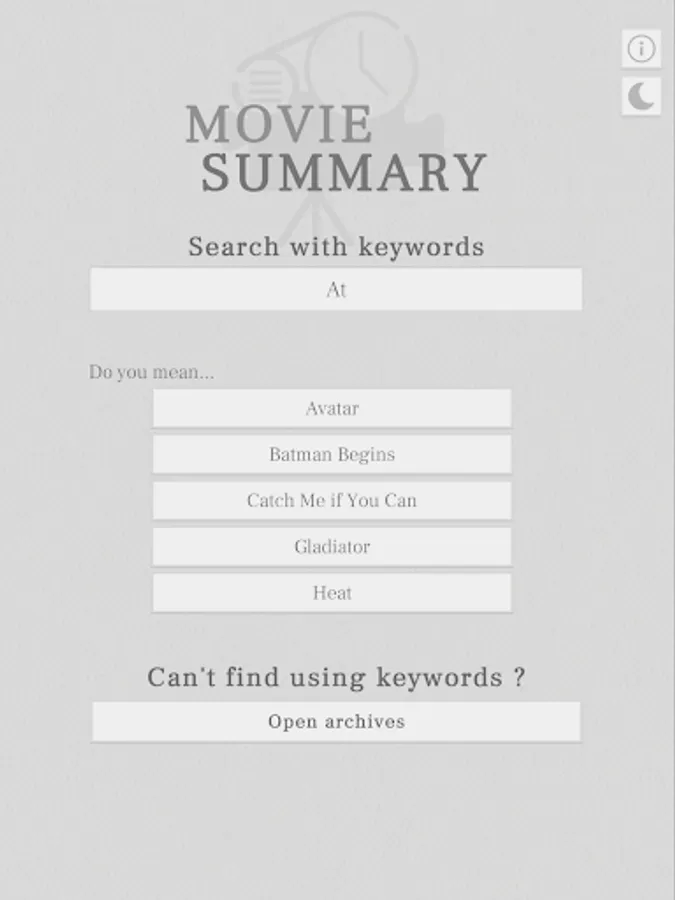 Movie Summary is an app allowing you to get to know the main bits of a movie without watching it.